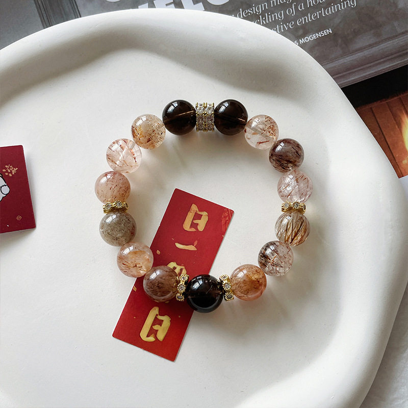 【金霸主】黑金超七天然水晶手串茶晶招米原创手串小红书爆款手链