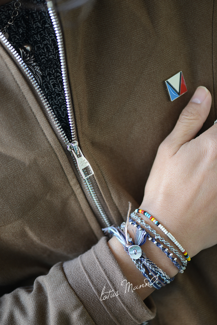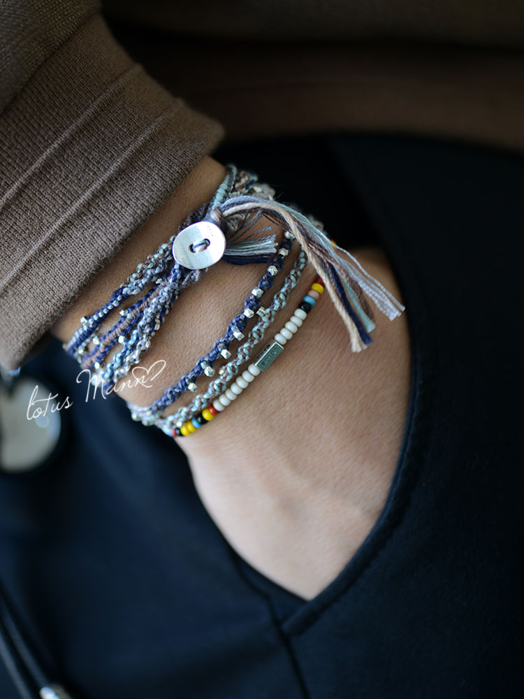 路塔斯曼5圈6色晨曦蓝925银籽粒缠绕式棉线编织长款手链