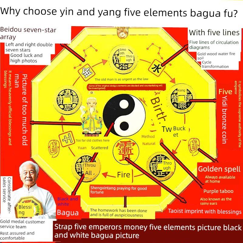 五行八卦祝福贴纸挂件纯铜桃木饰品床头镇厨房房解决方案门到门正