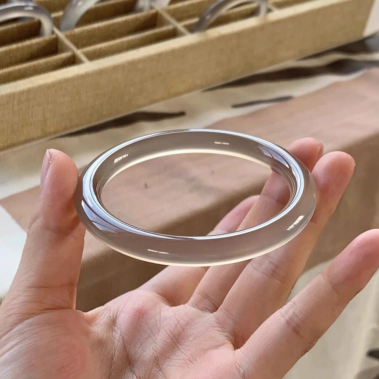 桥下观渔冰灰玛瑙手镯女纯天然冰种玉髓玉镯子深灰色原色冰透正品