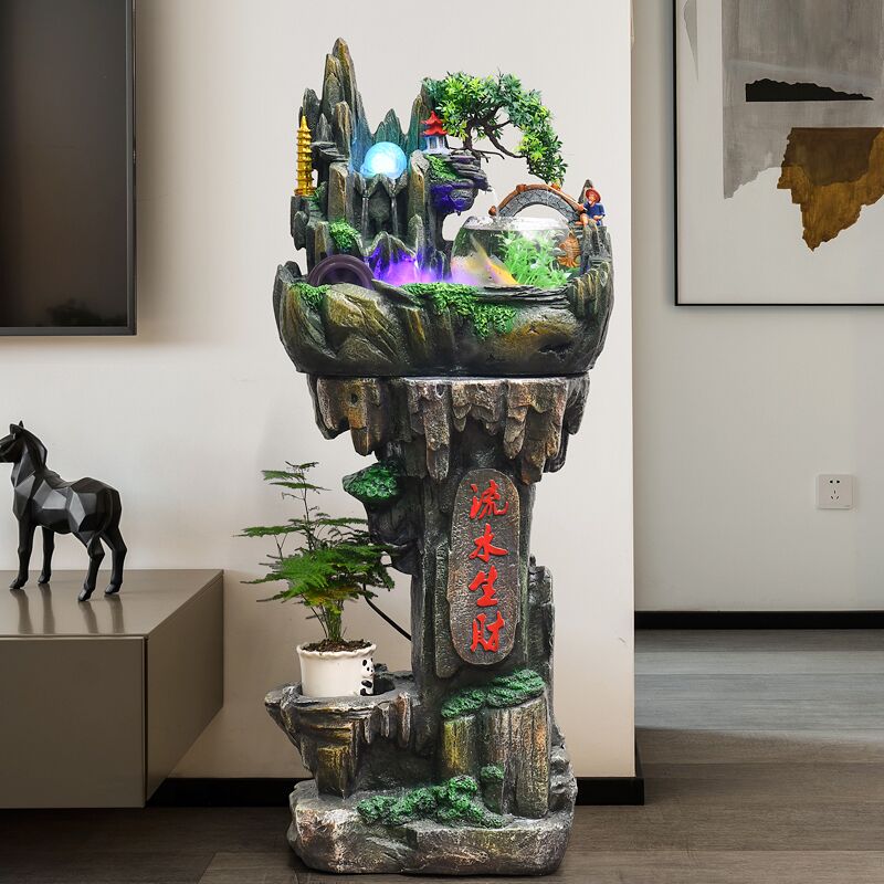 假山喷泉流水摆件小盆景r办公室电视柜客厅加湿器盆景茶台桌面鱼