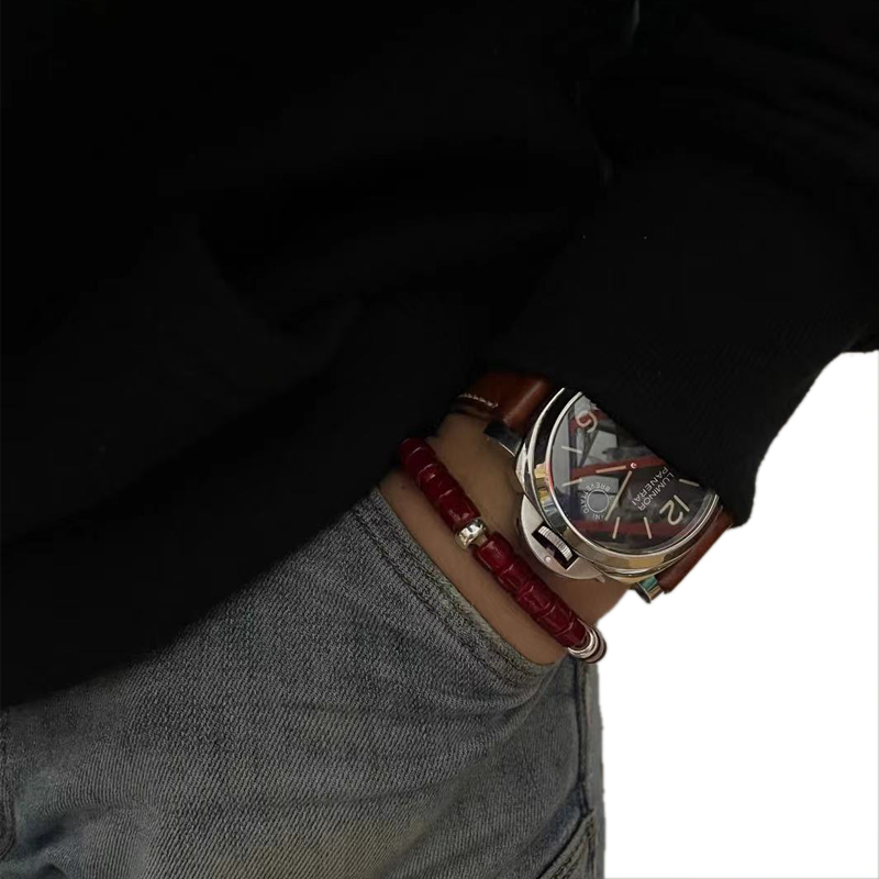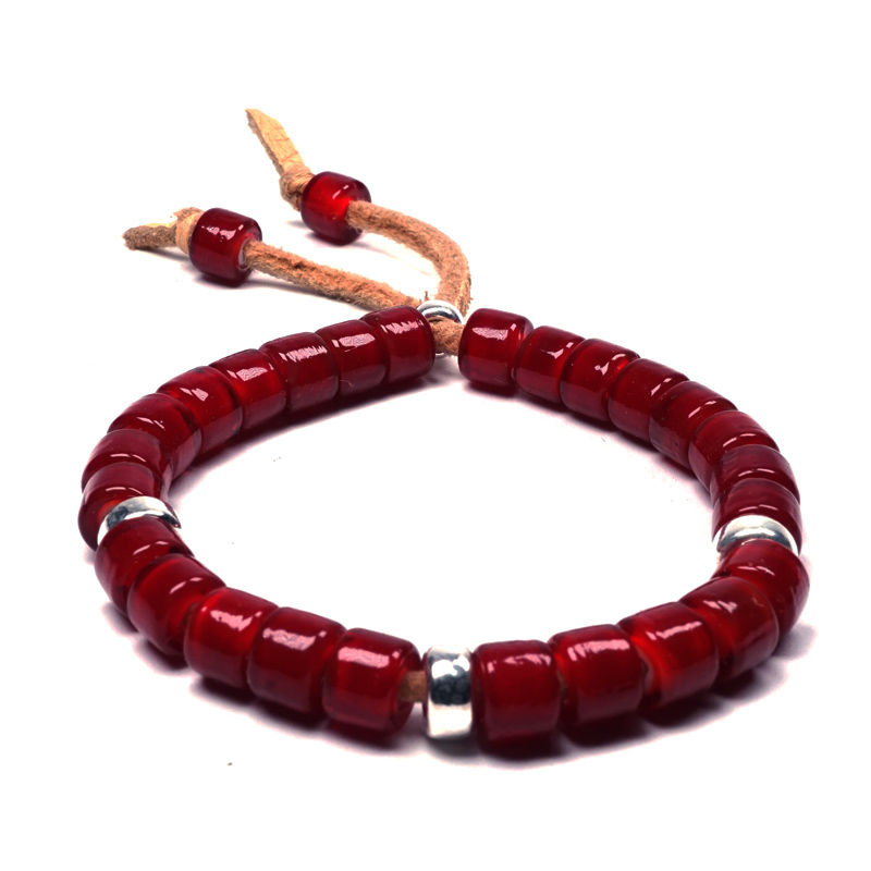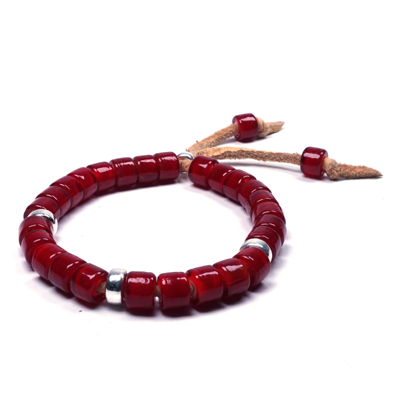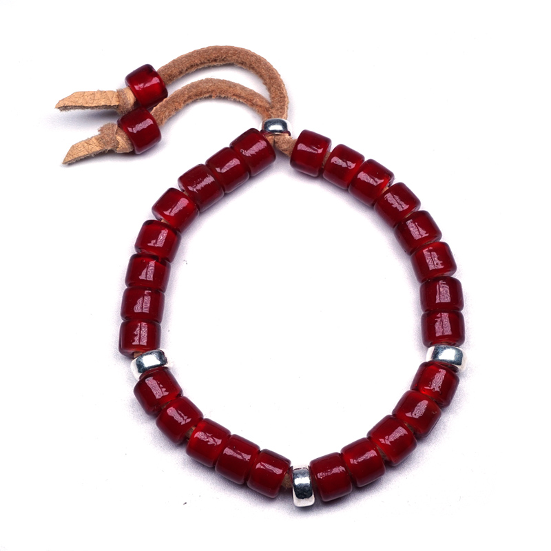 POHIER高桥吾郎徒弟村田高诗白芯枣红琉璃珠手链日本进口古董珠