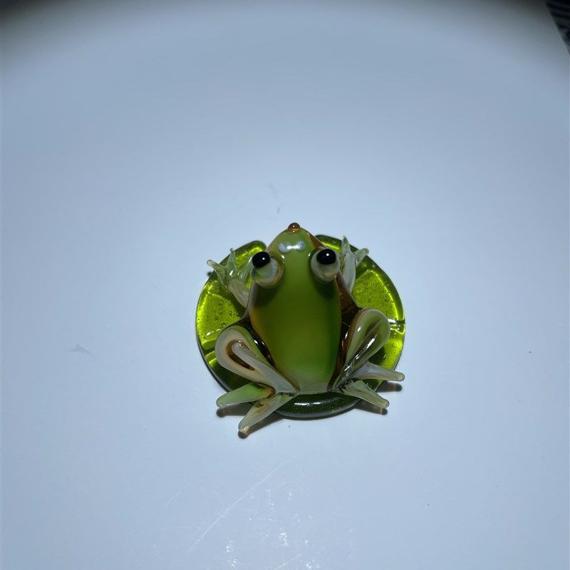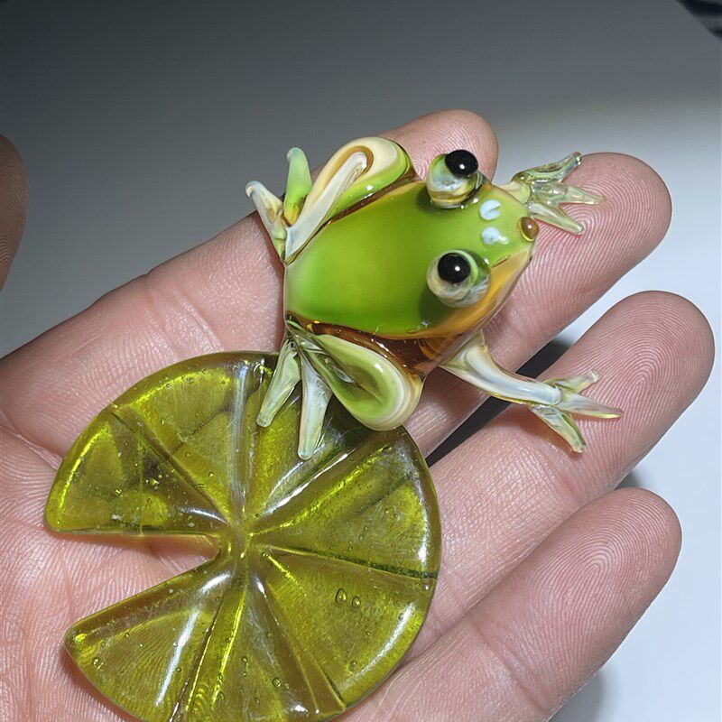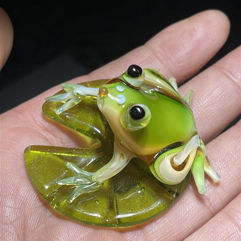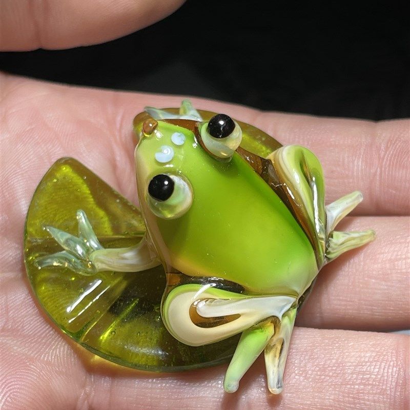 琉璃 手工作品 荷塘荷叶小青蛙 非遗 淄博琉璃布景 鱼缸假山摆件