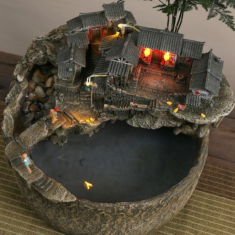 复古怀旧流水摆件循环水鱼缸创意客厅书房茶桌茶几装饰摆设送长辈