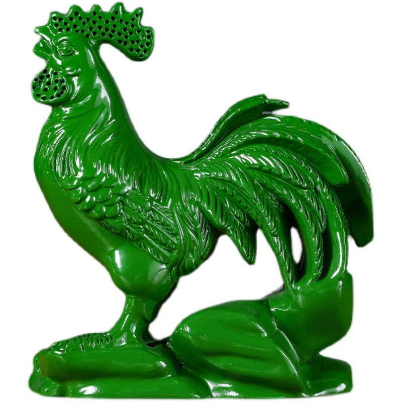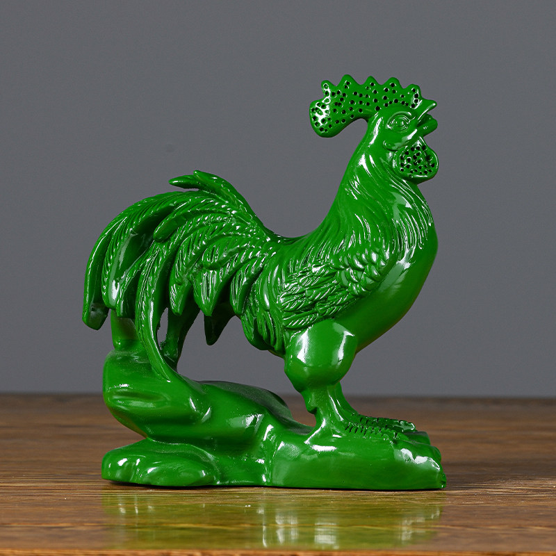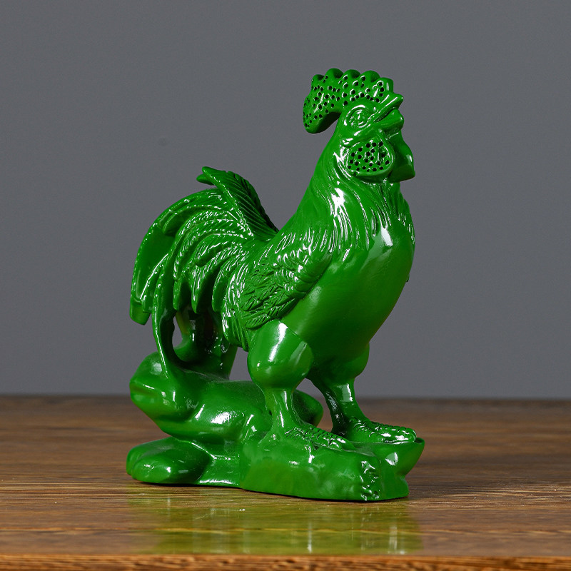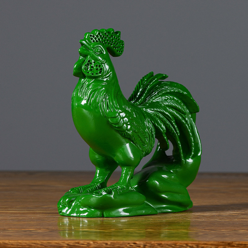 绿色实木雕刻鸡摆件十二生肖花梨公鸡客厅电视柜装饰工艺品送礼