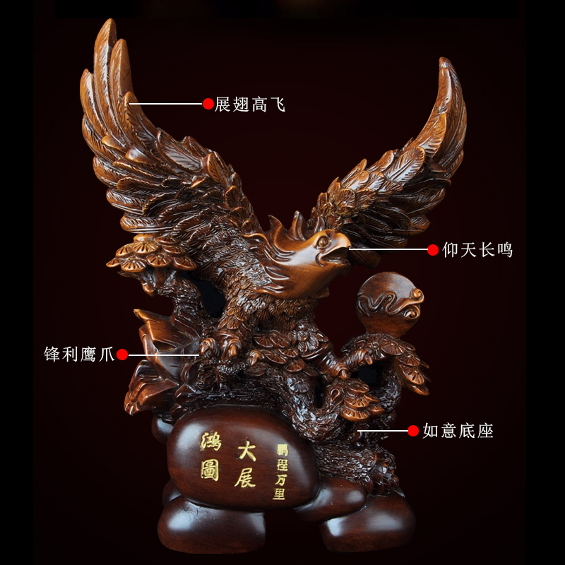 仿木雕老鹰大鹏展翅大展宏图家居装饰客厅摆件高档摆设