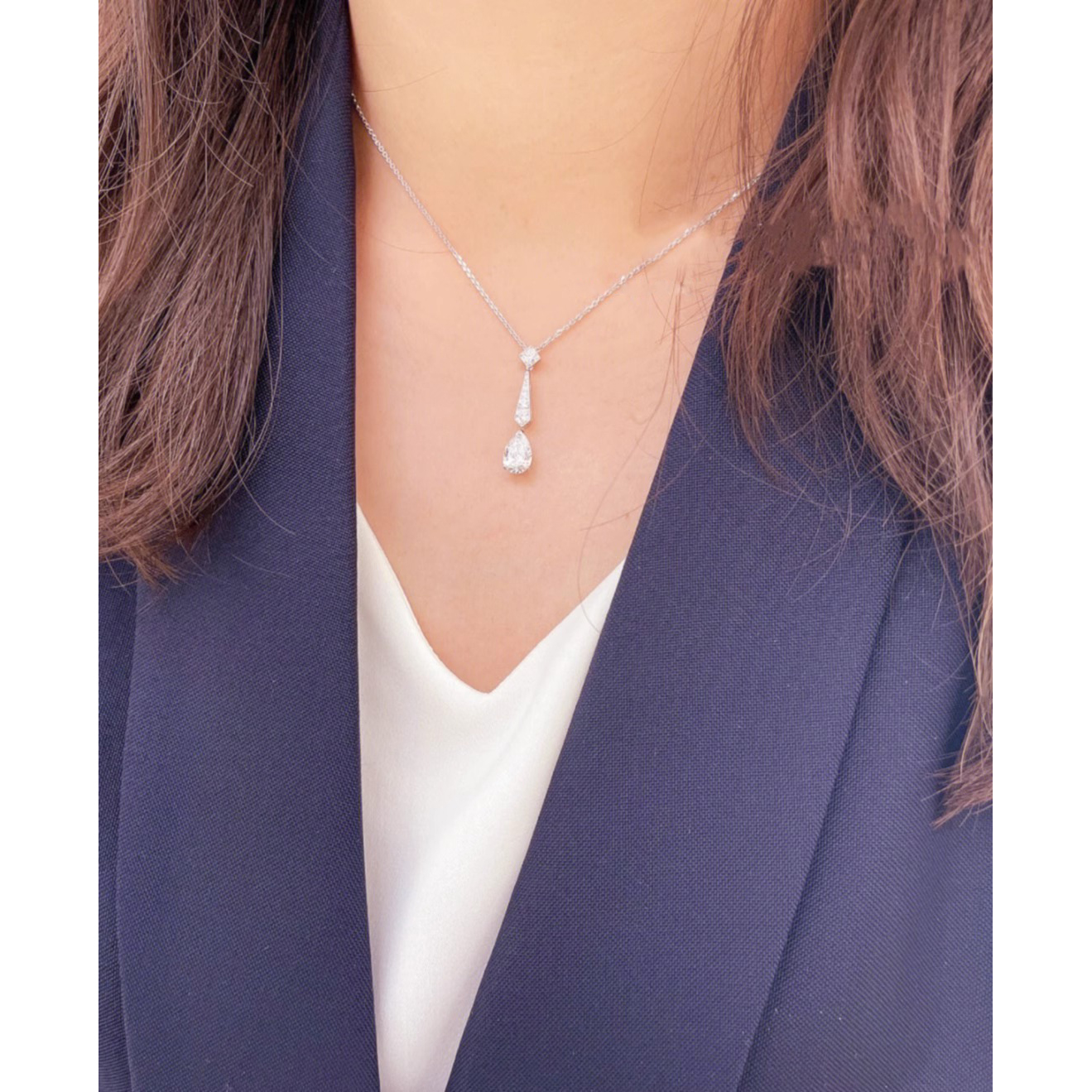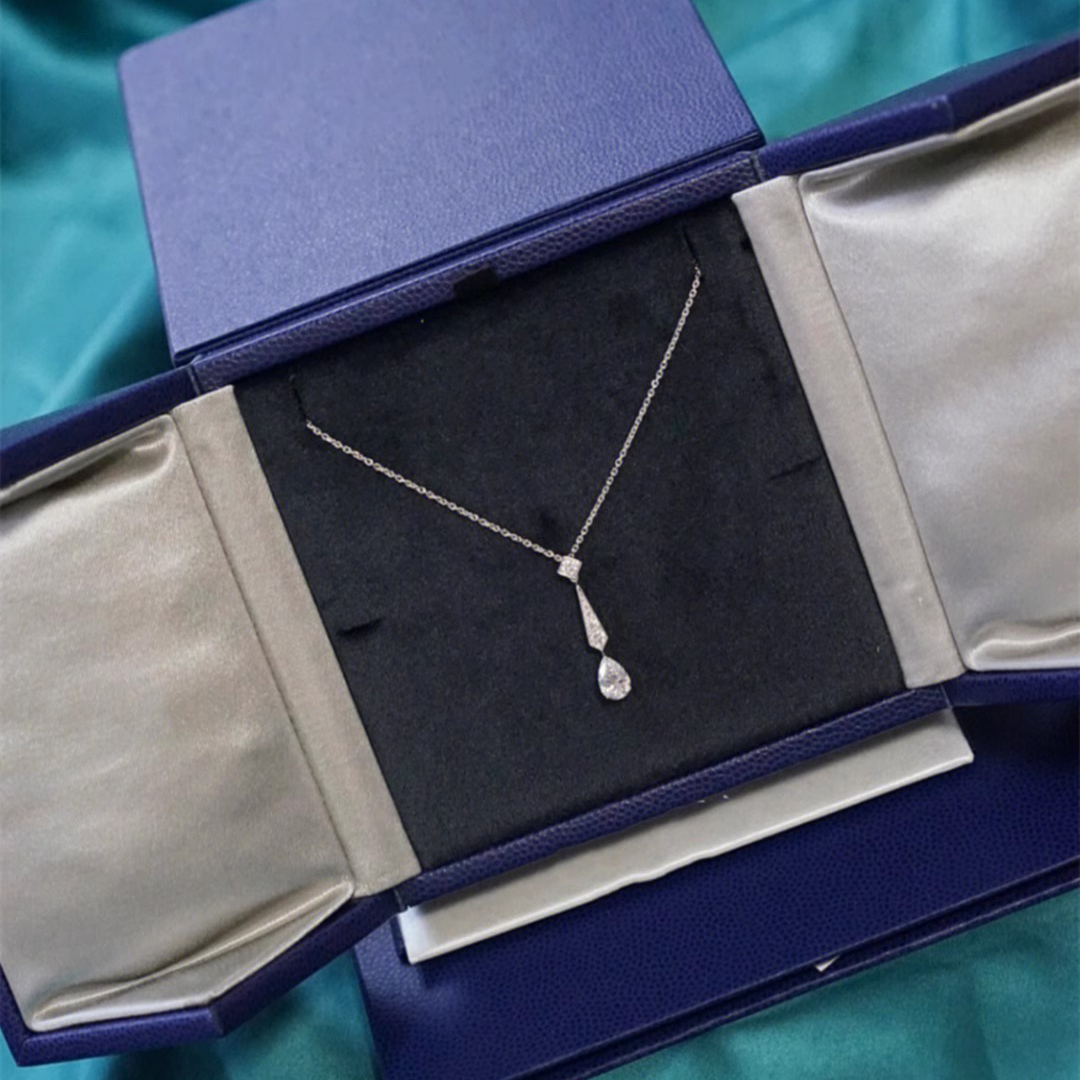 一滴泪仿真钻石项链美人鱼的眼泪水滴锁骨链925银1克拉莫桑钻吊坠