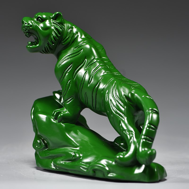 绿色木雕老虎摆件实木质上山虎生肖工艺品家居办公桌面装饰工艺品