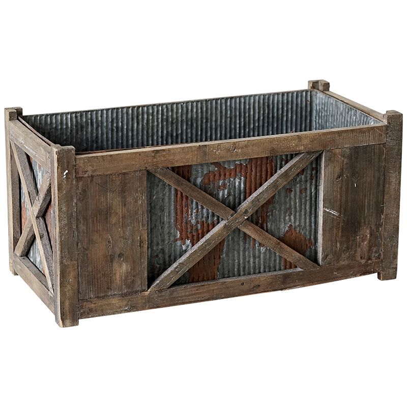 巴洛克种菜框生锈铁艺实木种花箱美式复古做旧花园花房花盆装饰品