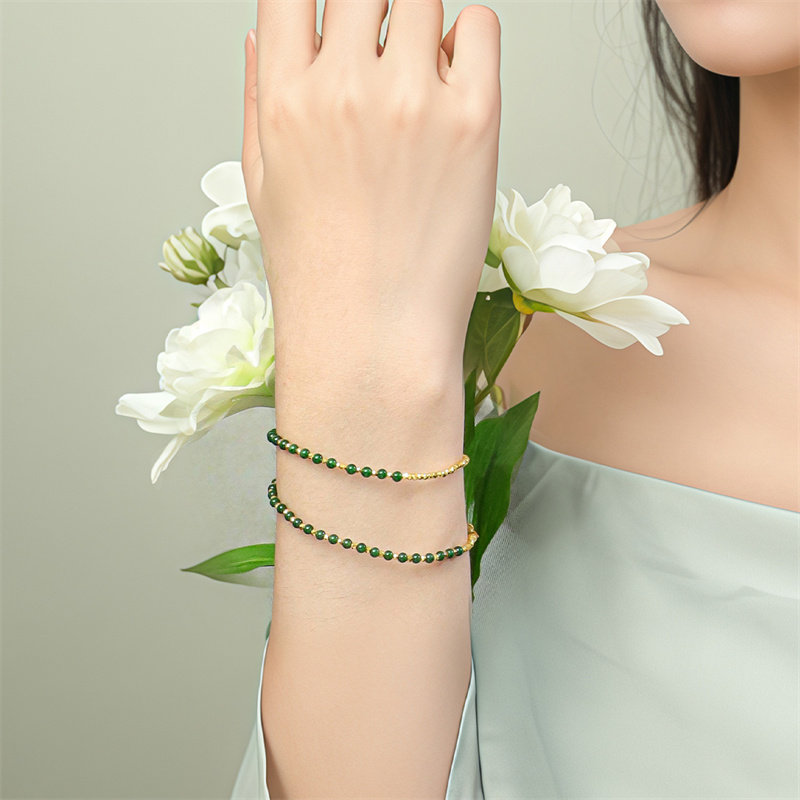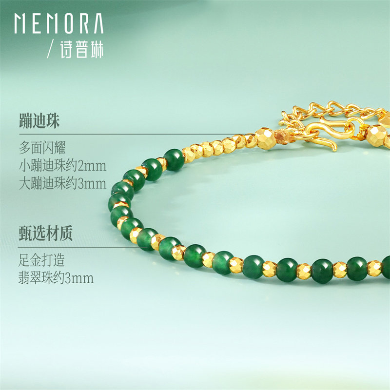 【新品】诗普琳 黄金足金蹦迪珠翡翠手串 金镶玉手链手饰送女友礼