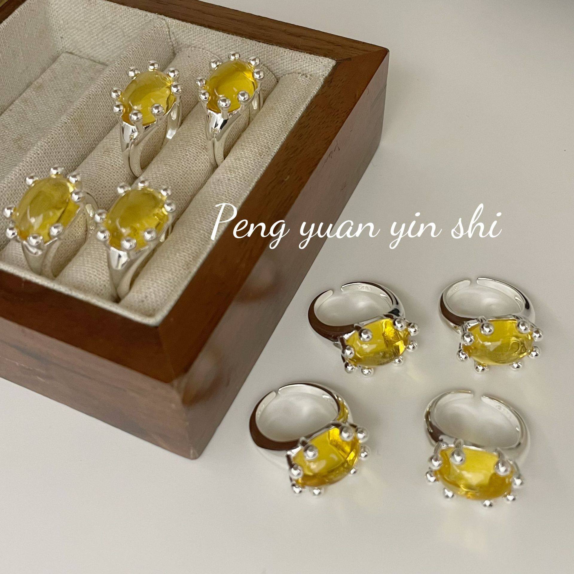 素创S925纯银黄钻小螃蟹戒指小众设计爪子造型黄色锆石开口食指环