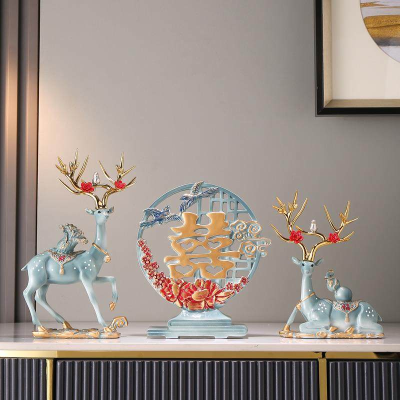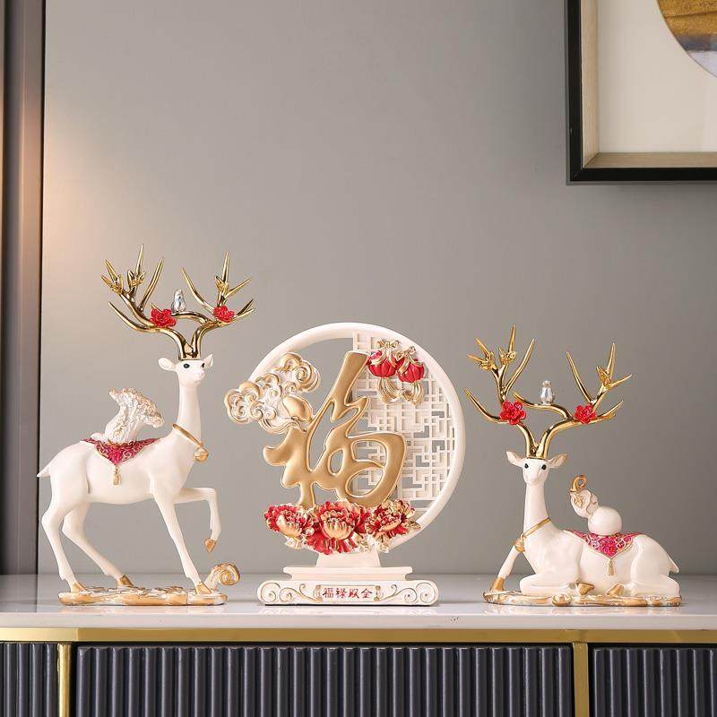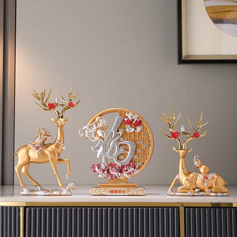新中式创意招财鹿摆件纯手工动物摆件家和兴旺玄关盘