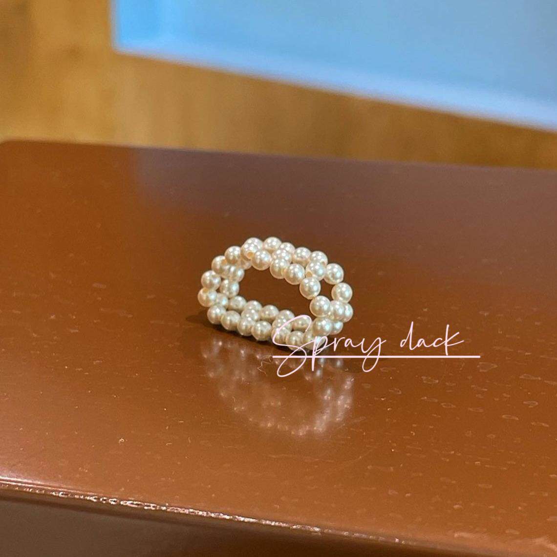 小众复古宫廷珍珠花环韩国设计师款仿珍珠串珠戒指ins博主同款