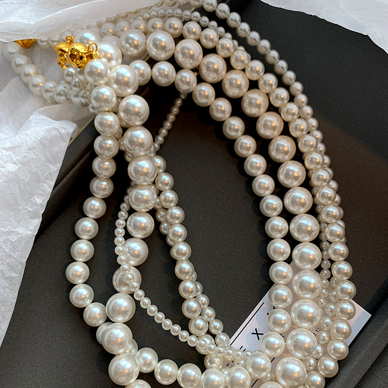 经典施家澳白高级感磁吸扣项链女小米珍珠轻奢极光法式颈链毛衣链