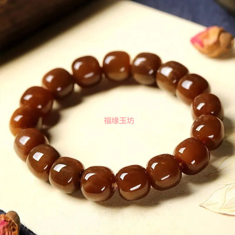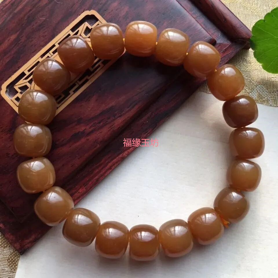 天然新疆和田玉焦糖手串焦糖色和田玉原色高端玉石手串手链男女