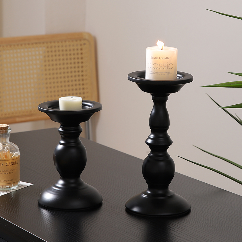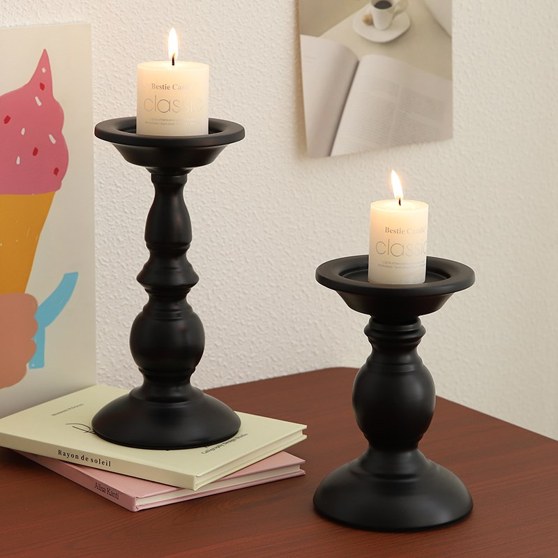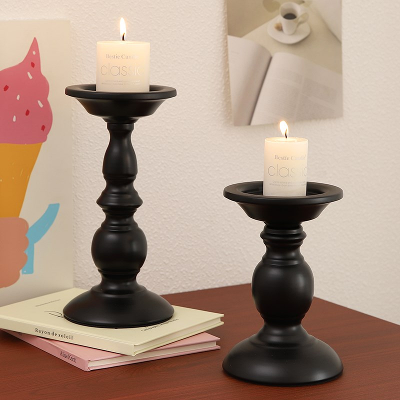 美式复古黑色铁艺烛台餐桌氛围感装饰摆件香薰蜡烛台座罗马柱烛台