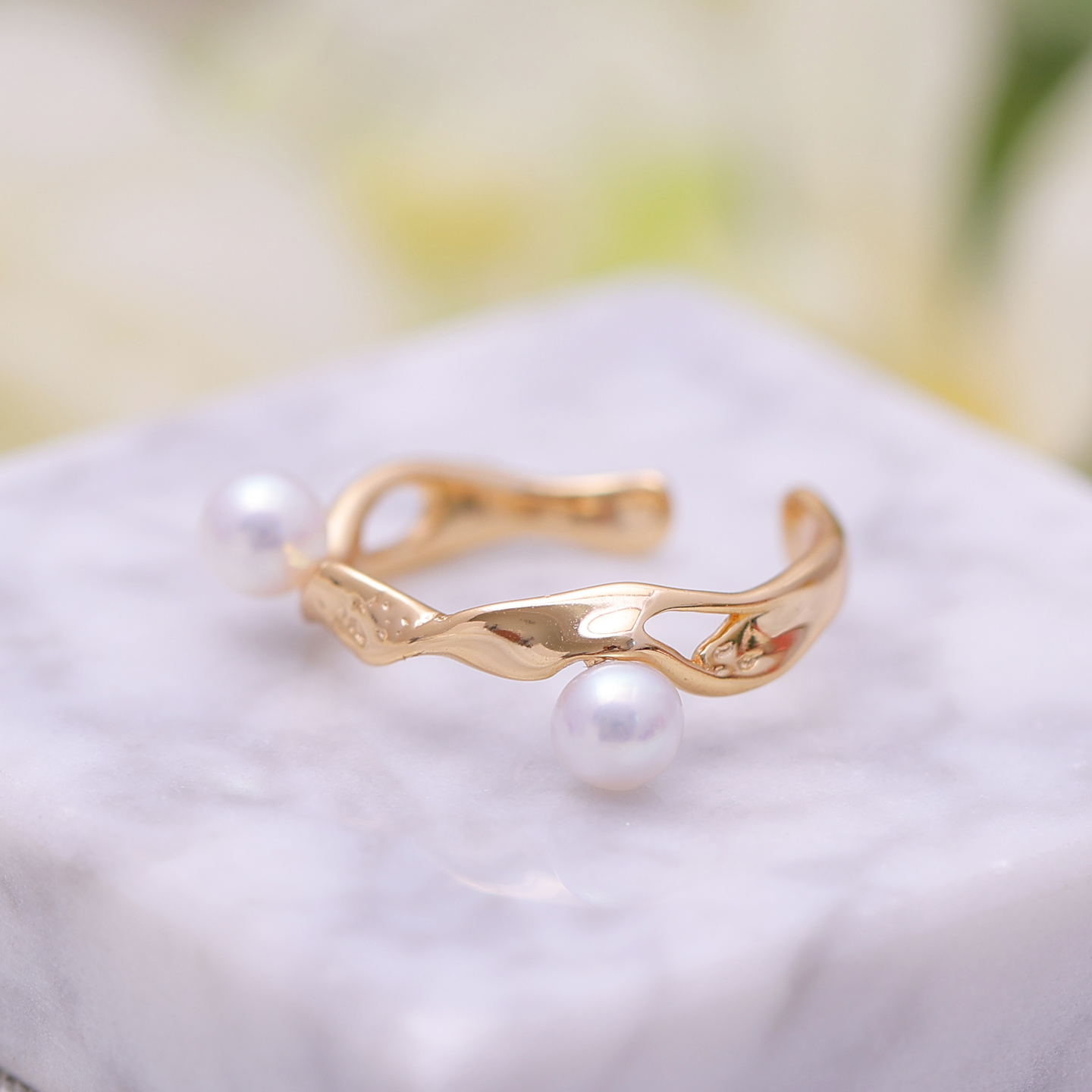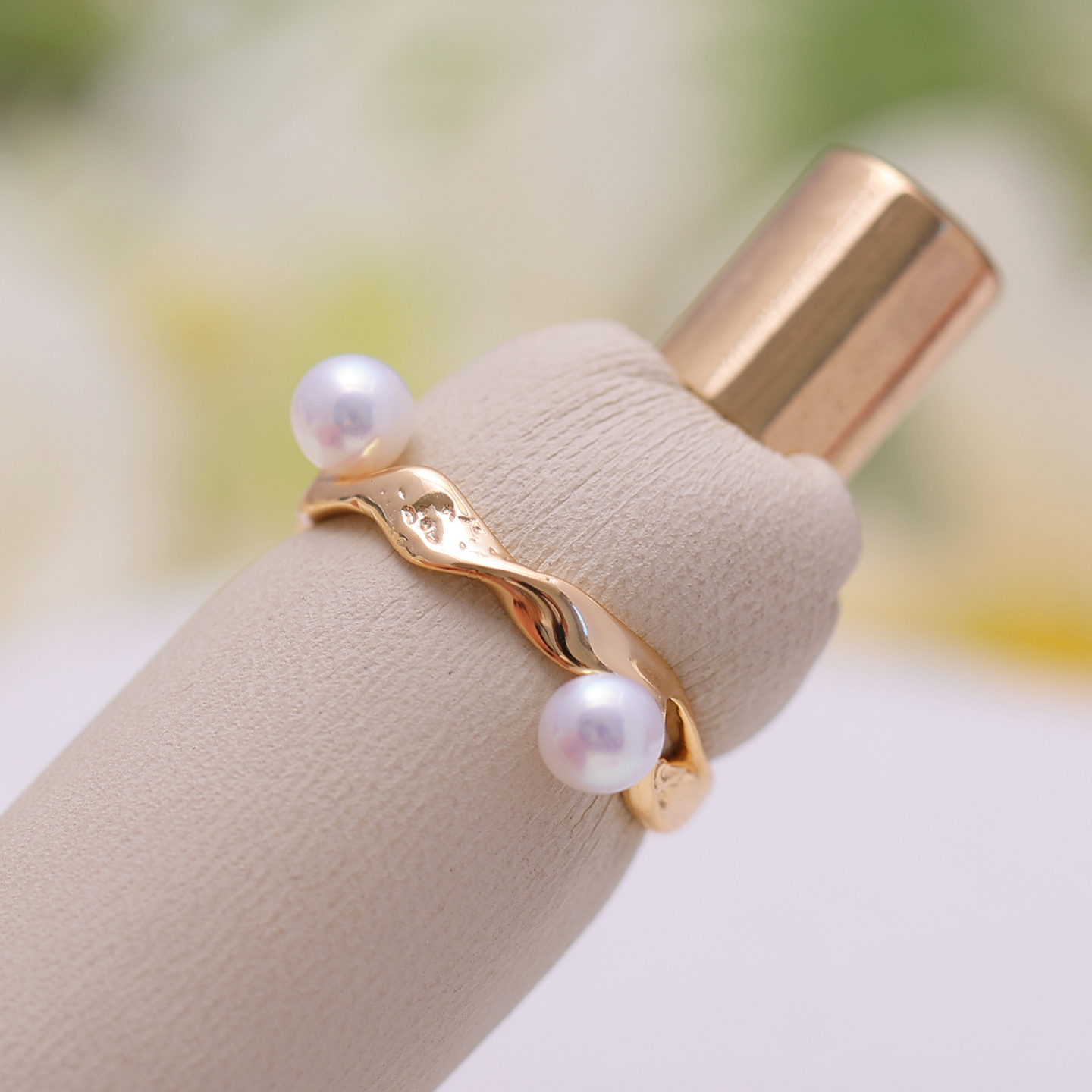 DIY珍珠配件S925纯银双珠时尚小巧不褶皱规则戒指托指环戒托空托