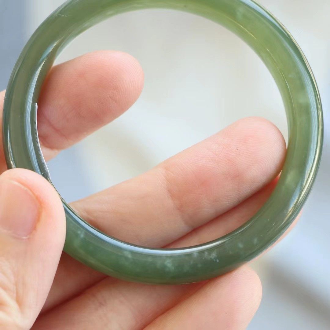 保真天然和田玉手镯51圈口证书编号8124127和田玉绿色 青海料