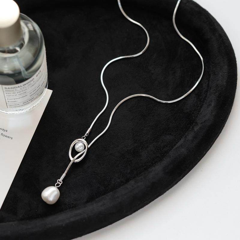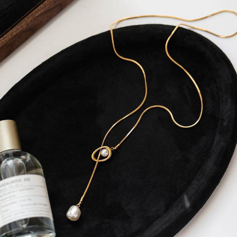 不掉色~几何镂空珍珠金色流苏长款休闲项链女毛衣链镀18K金通勤