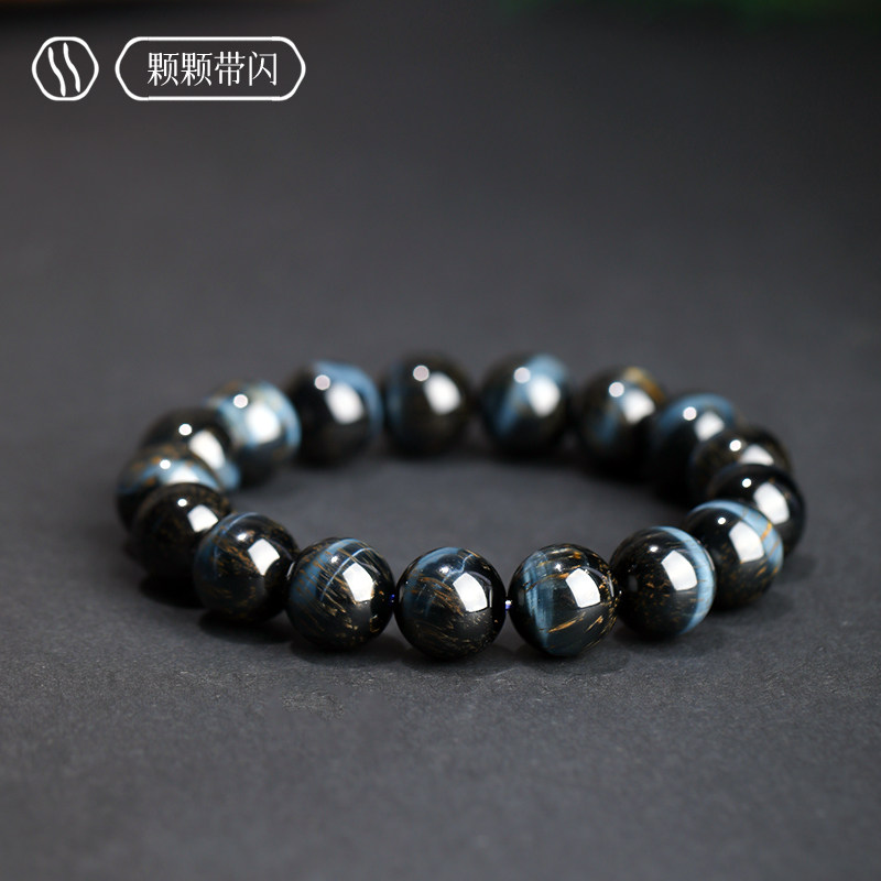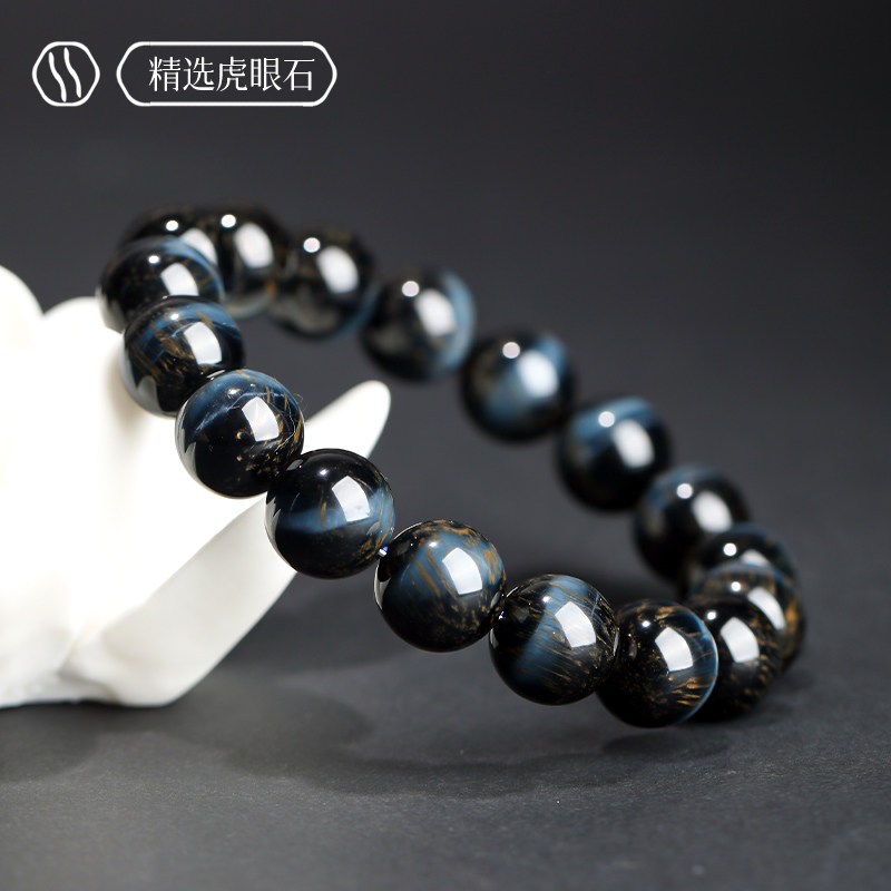 天然黄蓝虎眼石手链男女款新款虎晴石珠子散珠串珠手串送妈妈礼物