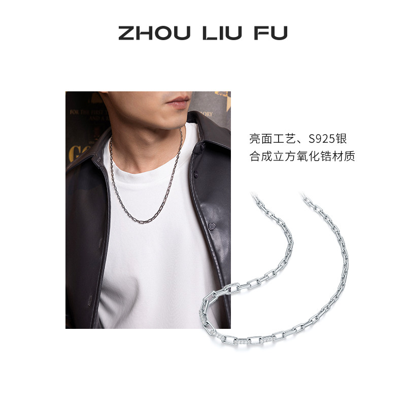 周六福S925银项链古巴链银素链圣诞礼物送男友
