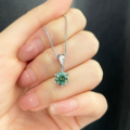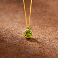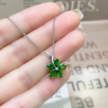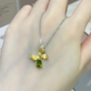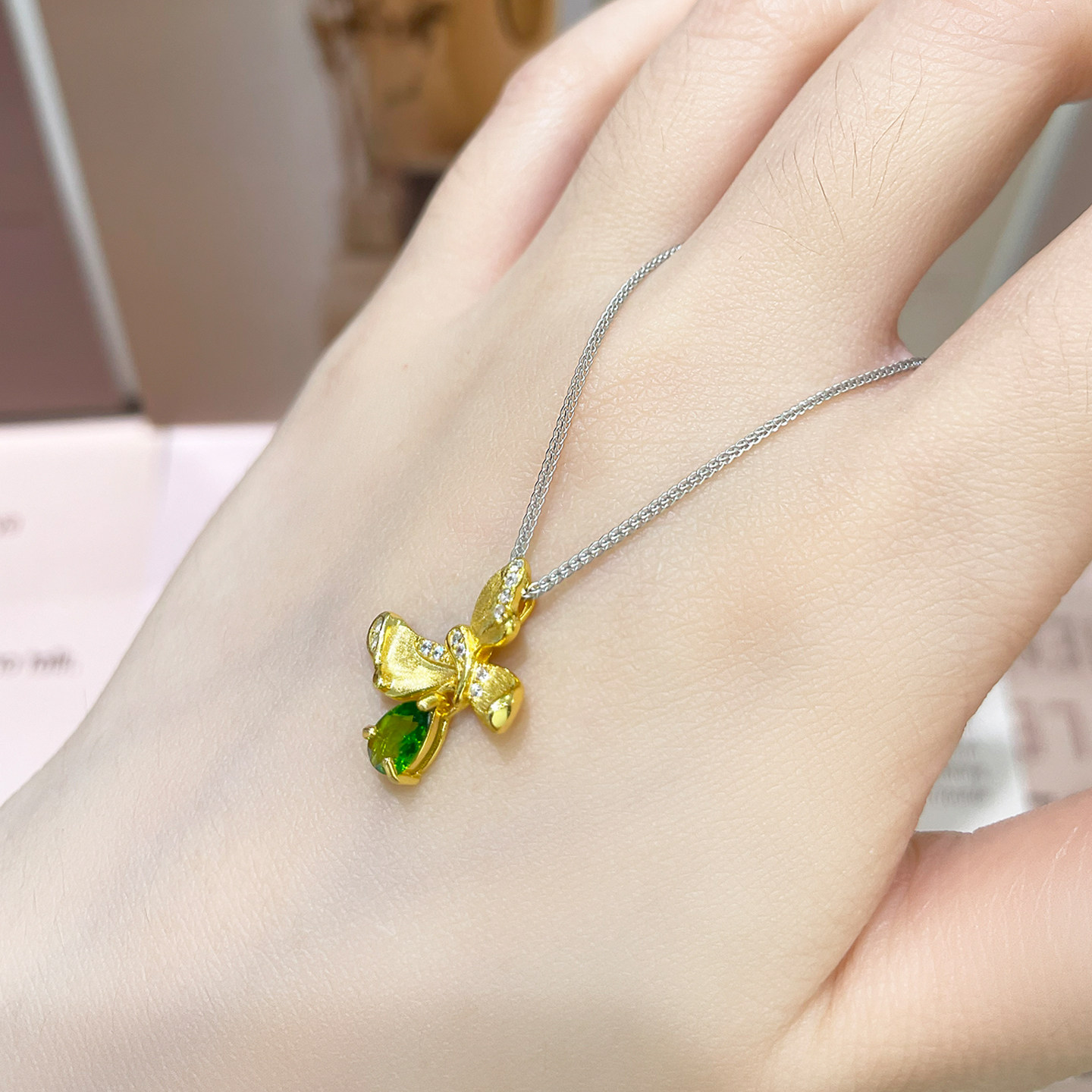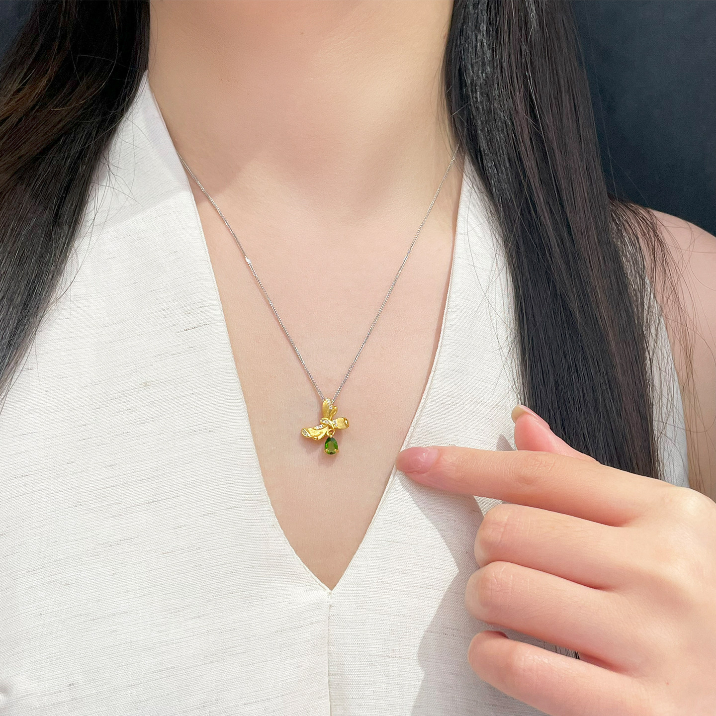 天然透辉石吊坠女S925纯银项链镶嵌绿色宝石水滴形金色花结叶片