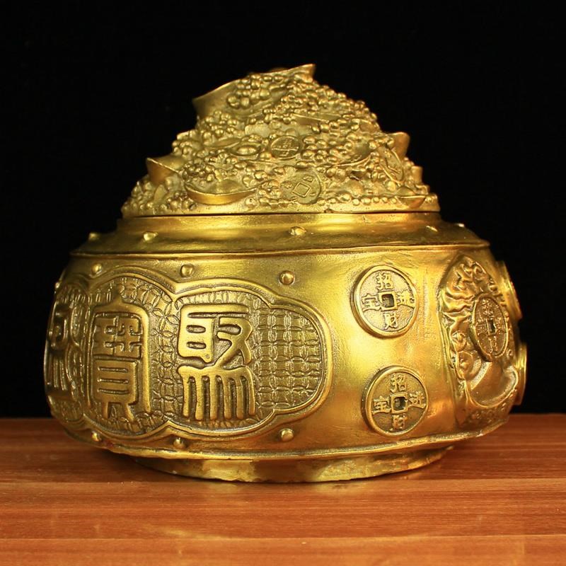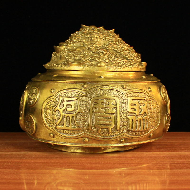 纯铜聚宝盆摆件五路财神店铺客厅带盖存钱罐礼品桌面办公室摆设