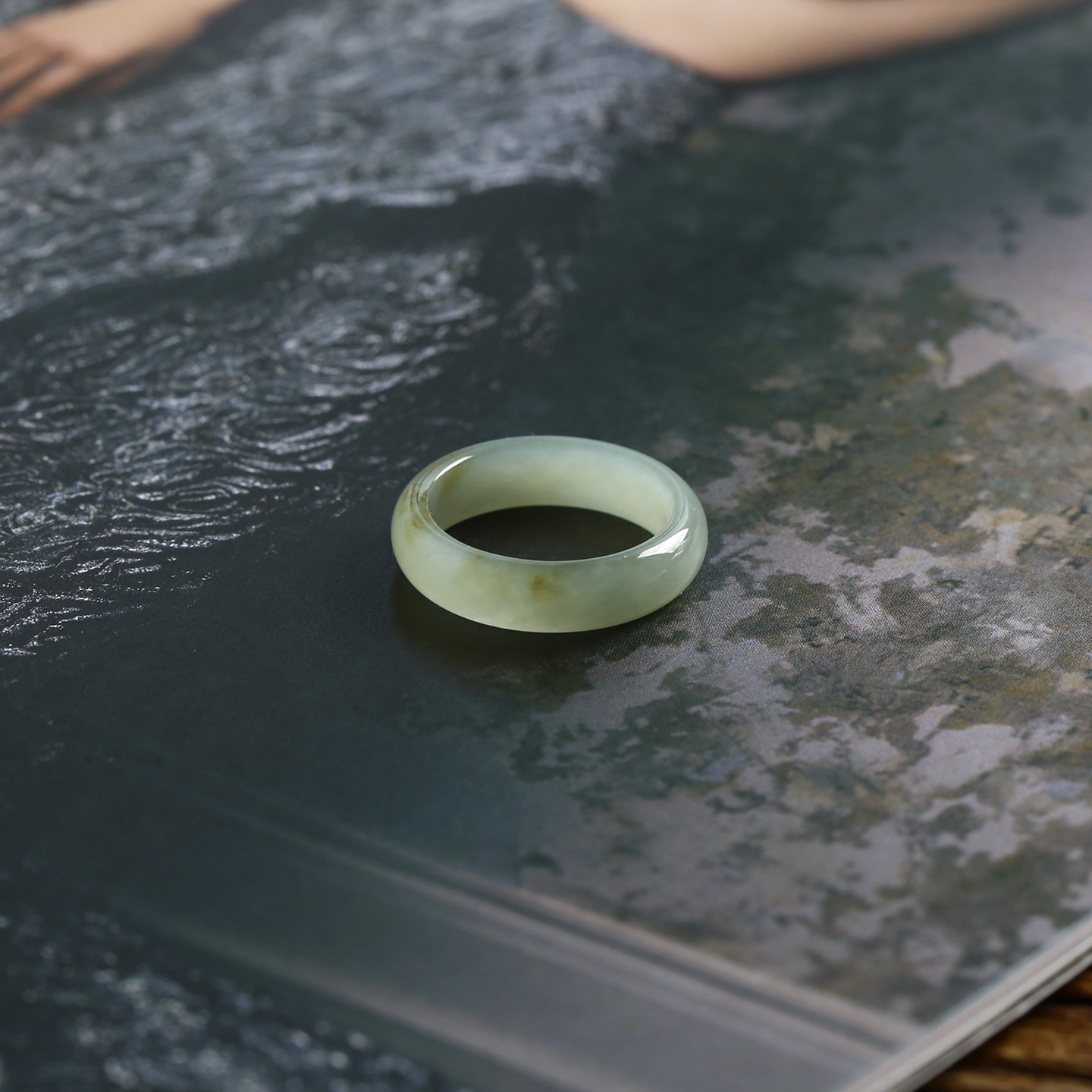 20号戒指 新疆和田玉糖料糖青玉泥鳅背圆弧素圈指环 2826
