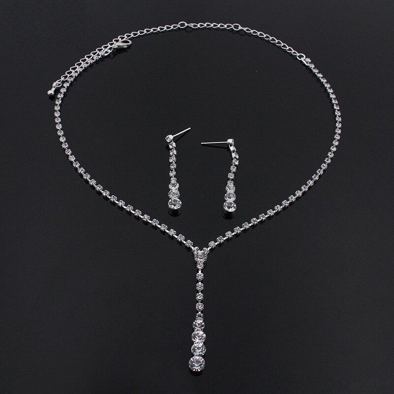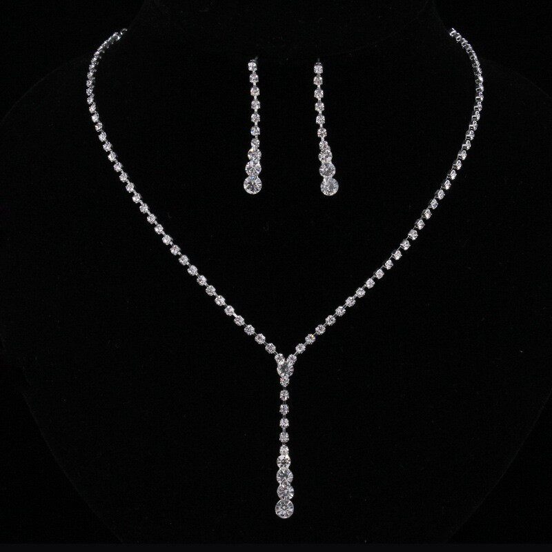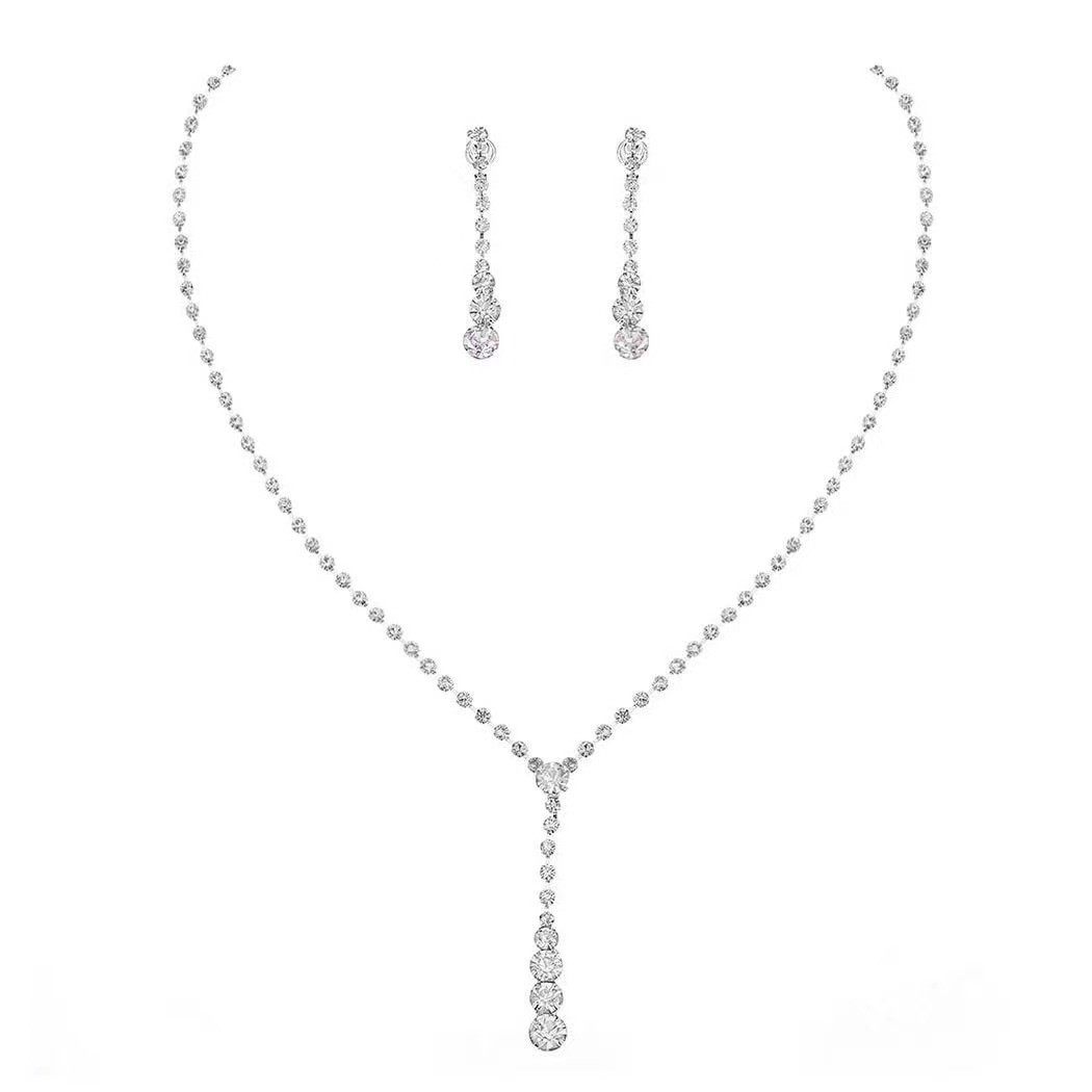 简约时尚嫁妆水钻项链两件套装电镀厚银女孩生日礼物演出配饰礼品