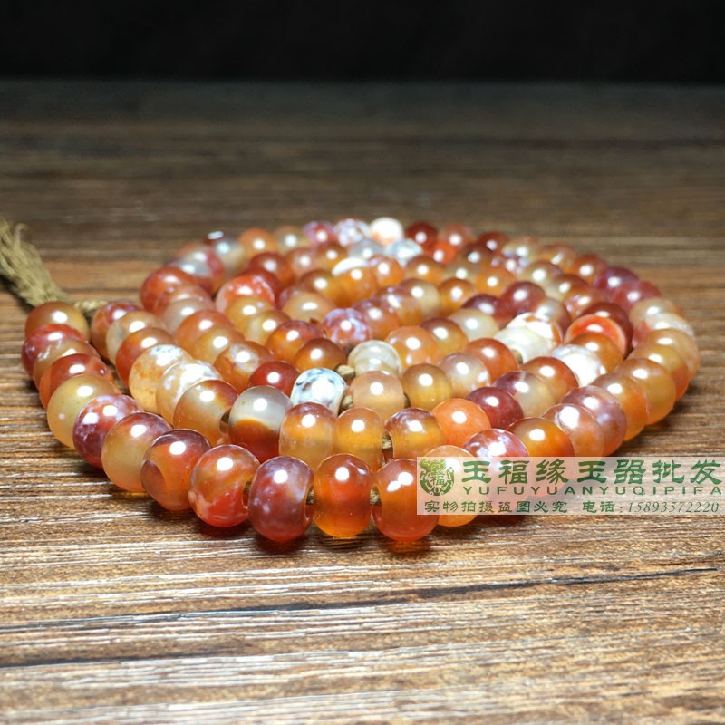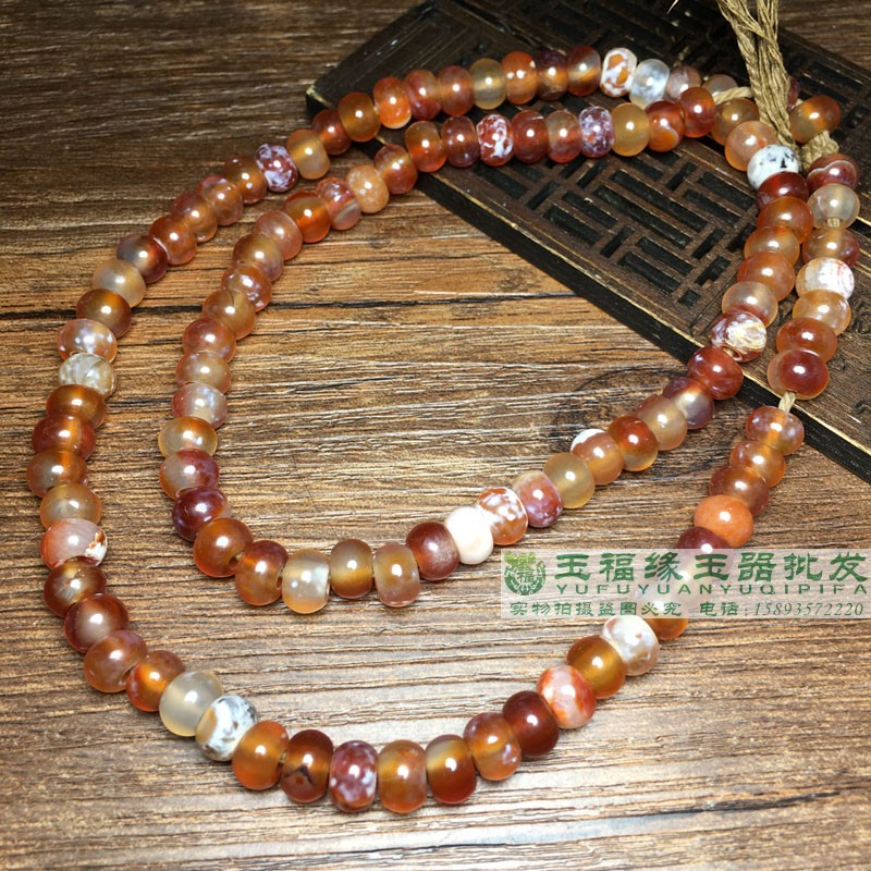 大孔灰白皮老玛瑙鸡骨白玛瑙108钙化老玛瑙老形苹果珠算盘珠配饰