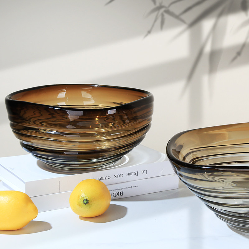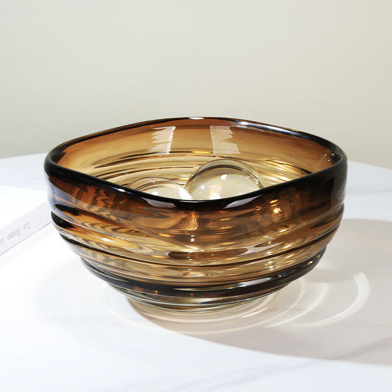轻奢艺术玻璃螺旋水果盘摆件现代客厅茶几样板间售楼处桌面收纳盘