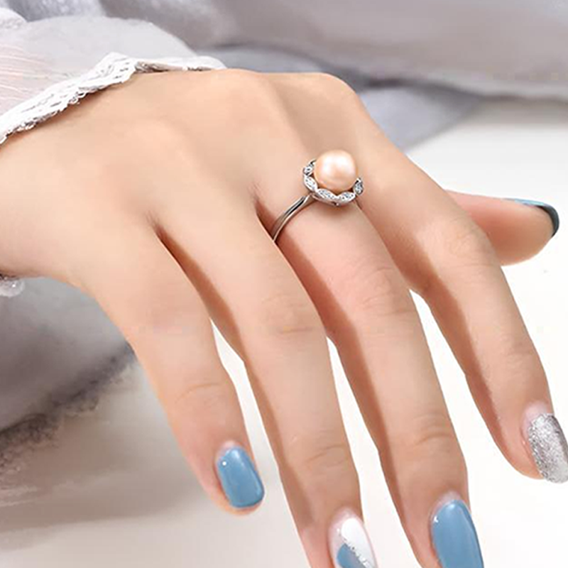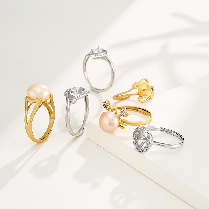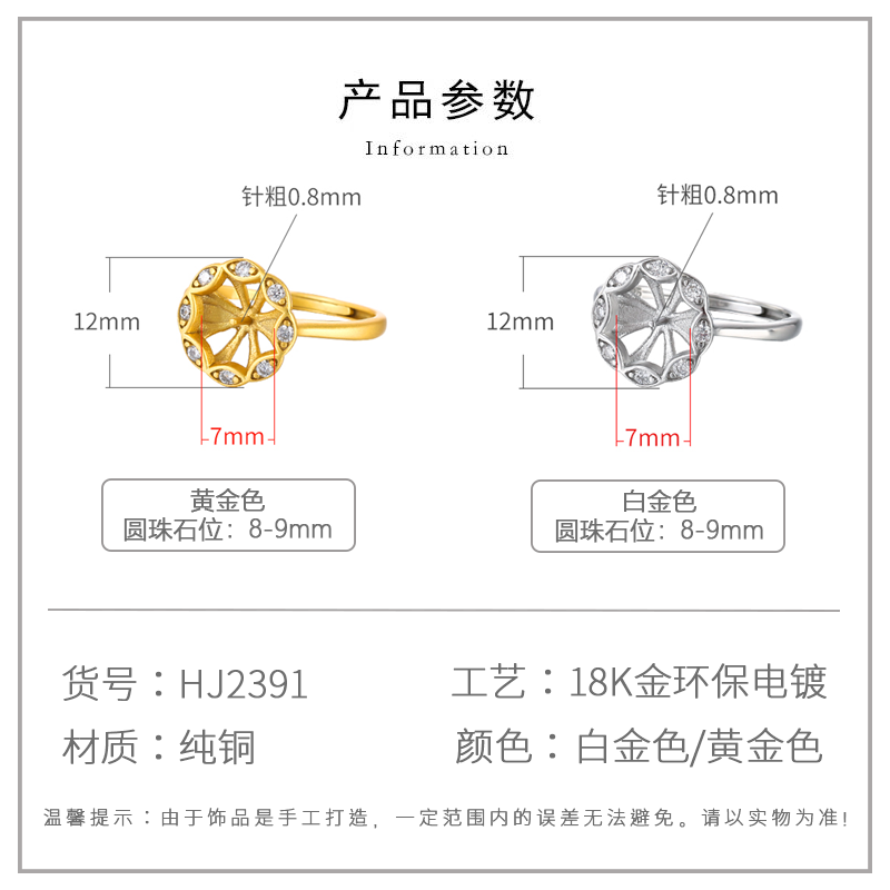 珍珠配件戒指空托男女空托针式半孔翡翠蜜蜡玉珠戒指托配饰8-9mm