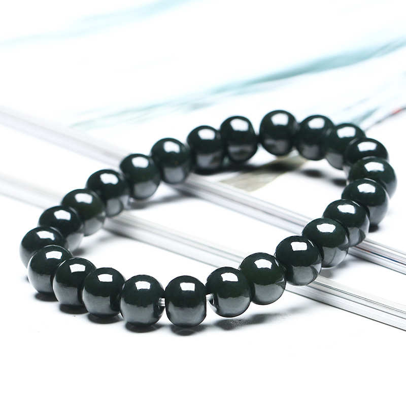 新疆和田玉青玉手串塔青老型珠手链男女款青墨玉佛珠