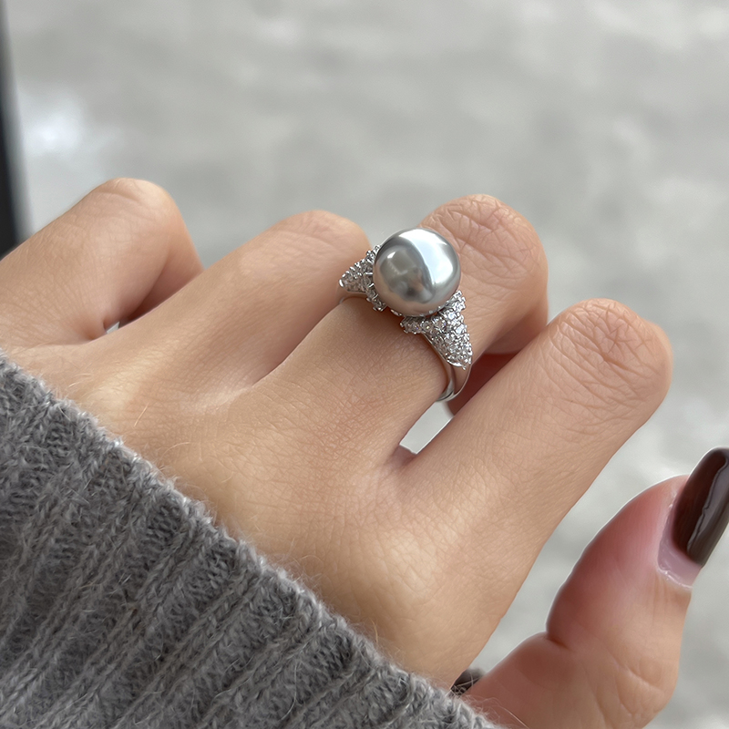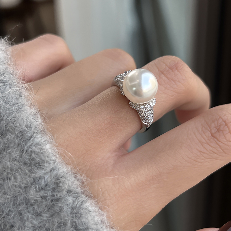 方糖家 美拉德摩卡金棕纯银珍珠开口戒指小众设计轻奢高级感指环