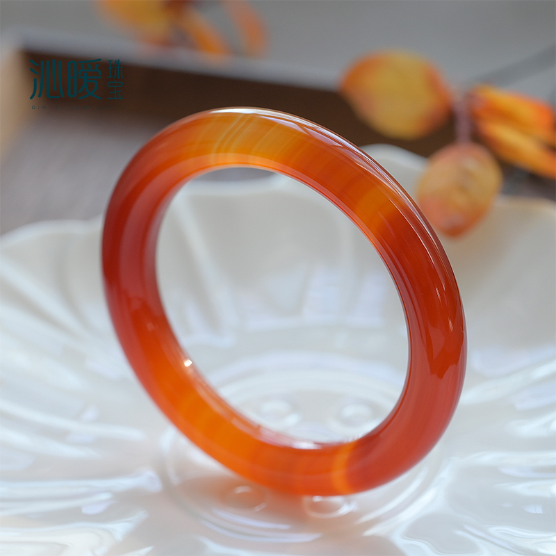 玛瑙手镯复古圆条玉髓本命年镯子红色玉镯带纹理天然红水晶镯女饰