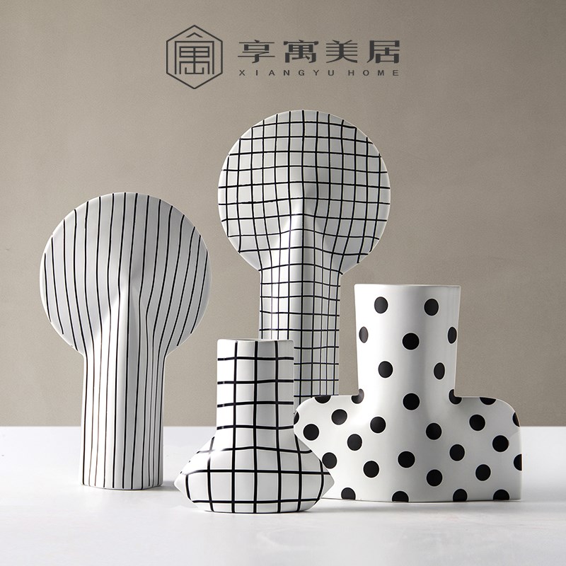 北欧现代简约创意几何陶瓷花瓶摆件样板间售楼处客厅W玄关桌面摆