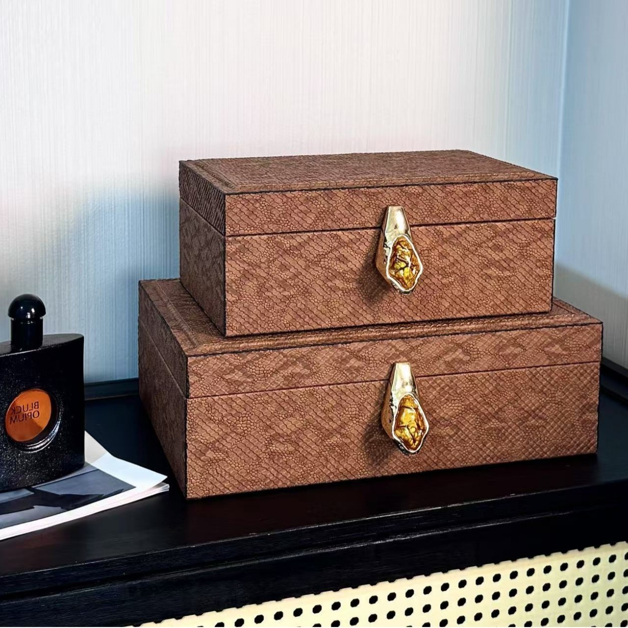 复古风客厅茶几玄关样板房衣帽间卧室酒店高档皮革首饰收纳盒摆件