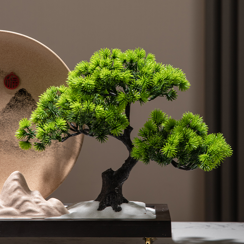 沙盘摆件新中式办公室p书房装饰品老板领导桌迎客松创意摆设工艺