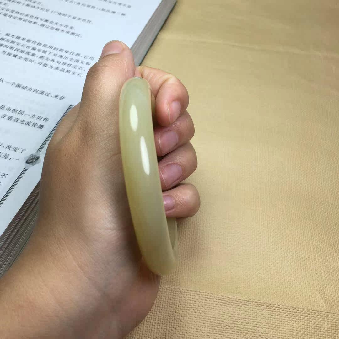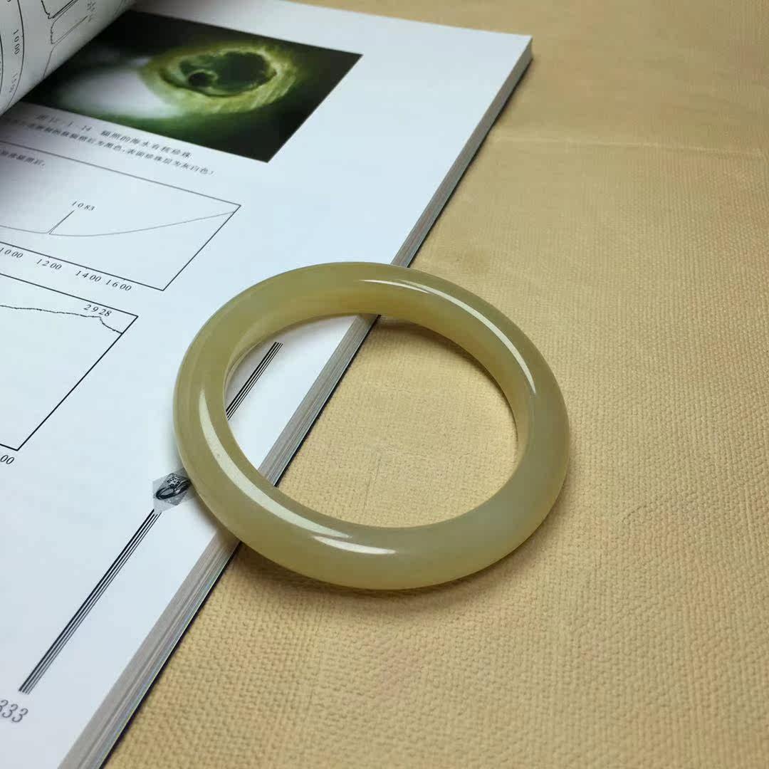 和田玉手镯天然玉石且末糖糖料手镯圆条全糖女款料子细腻简约大方