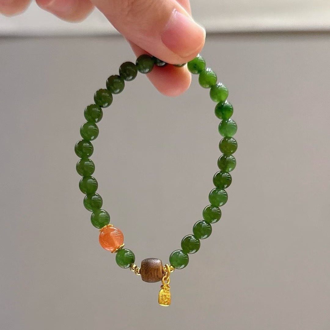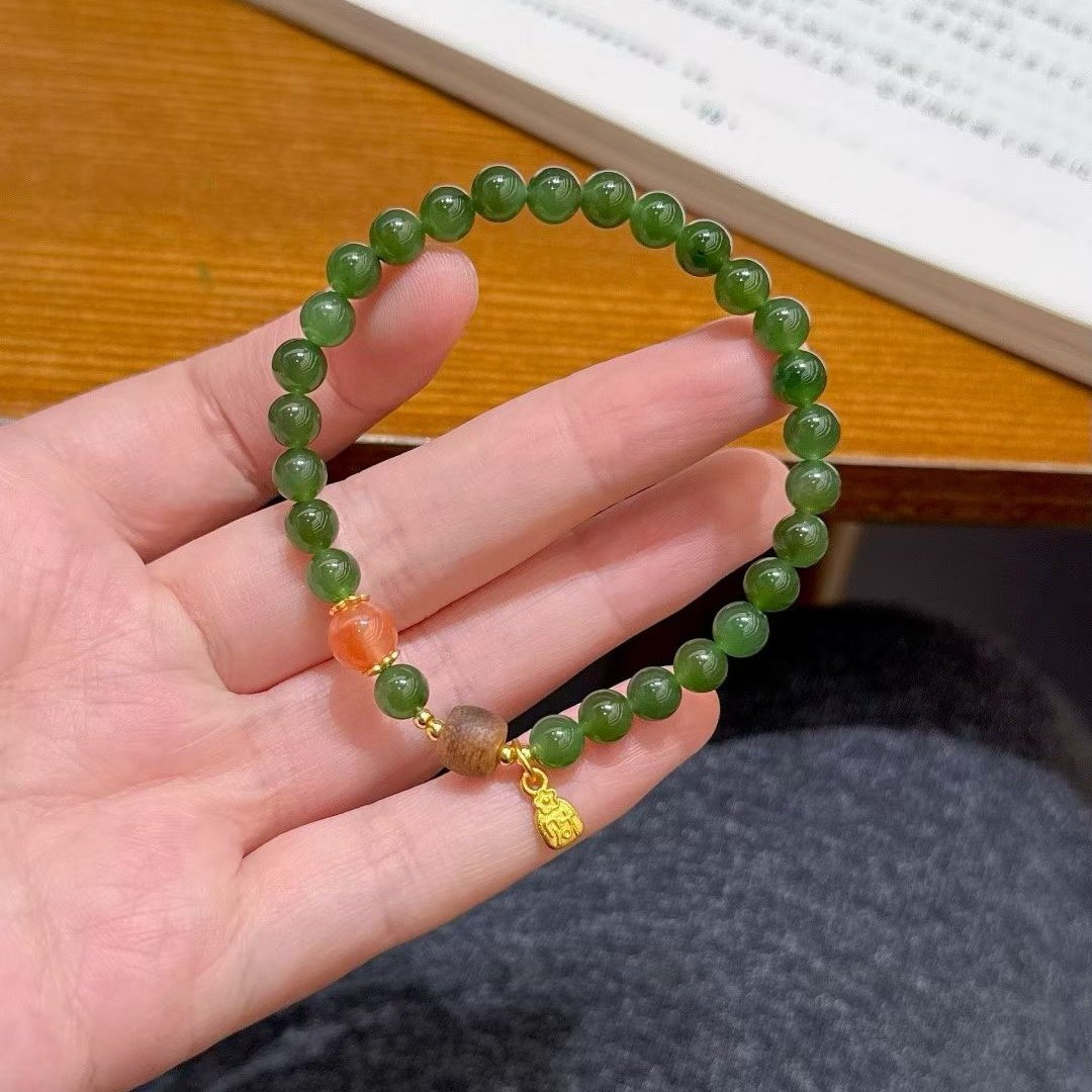 天然玉石绿色碧玉手串轻奢小众福牌手链女士串珠南红玛瑙沉香送礼