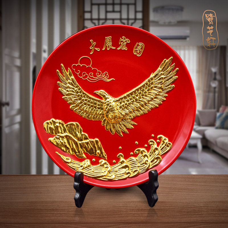 大展宏图老鹰桌面摆件漆线雕陶瓷工艺品摆件开业礼品办公室摆设