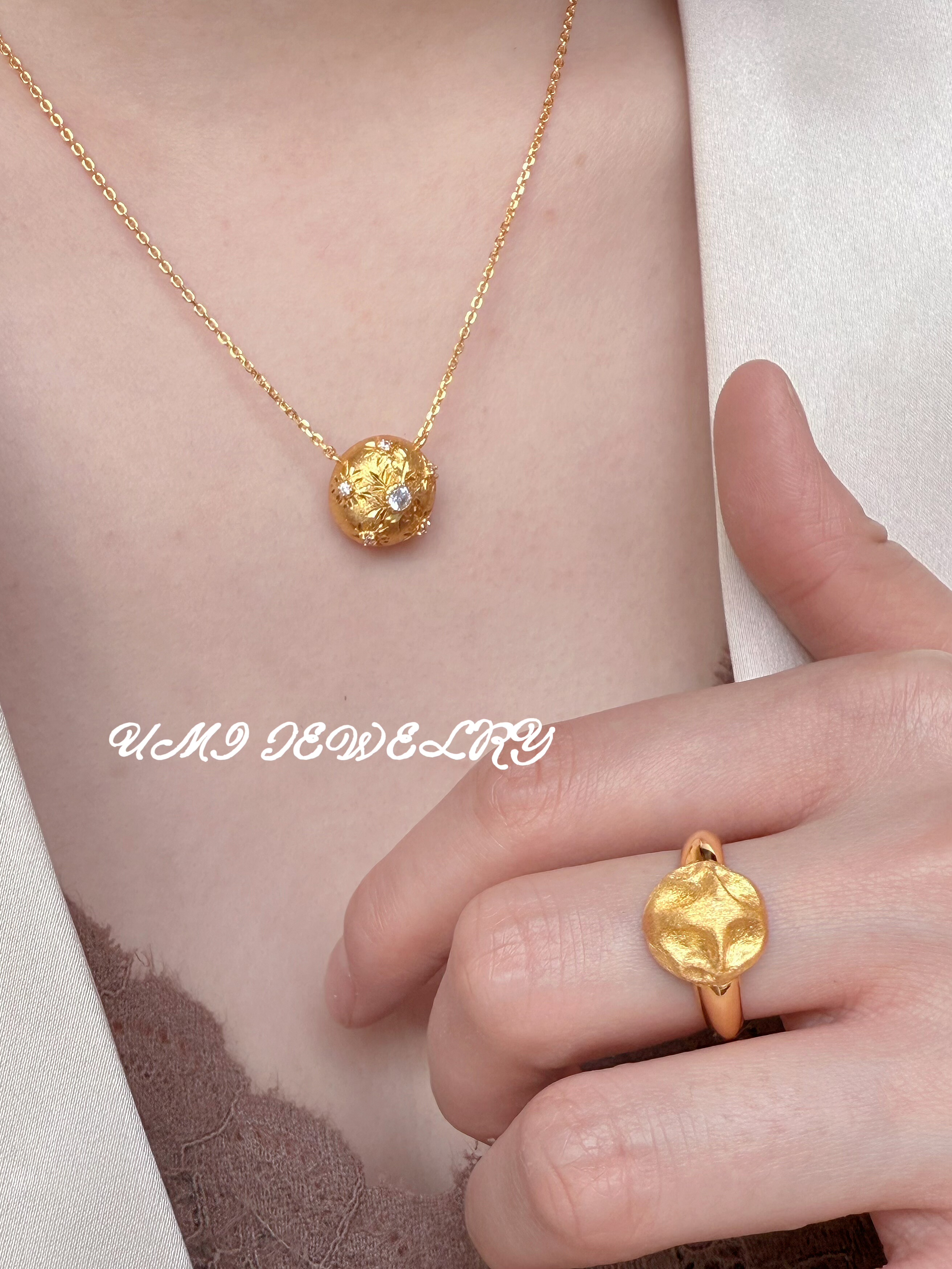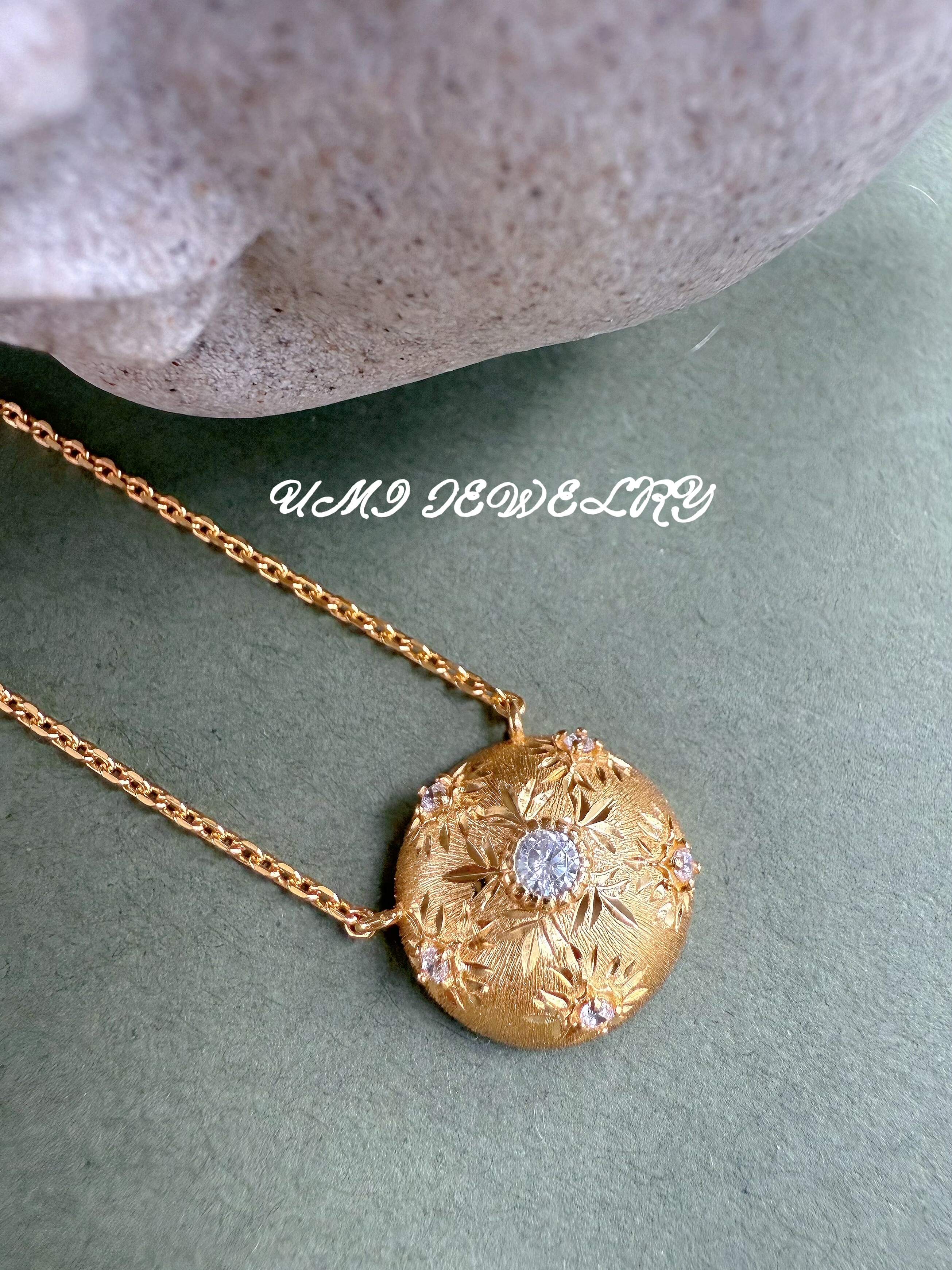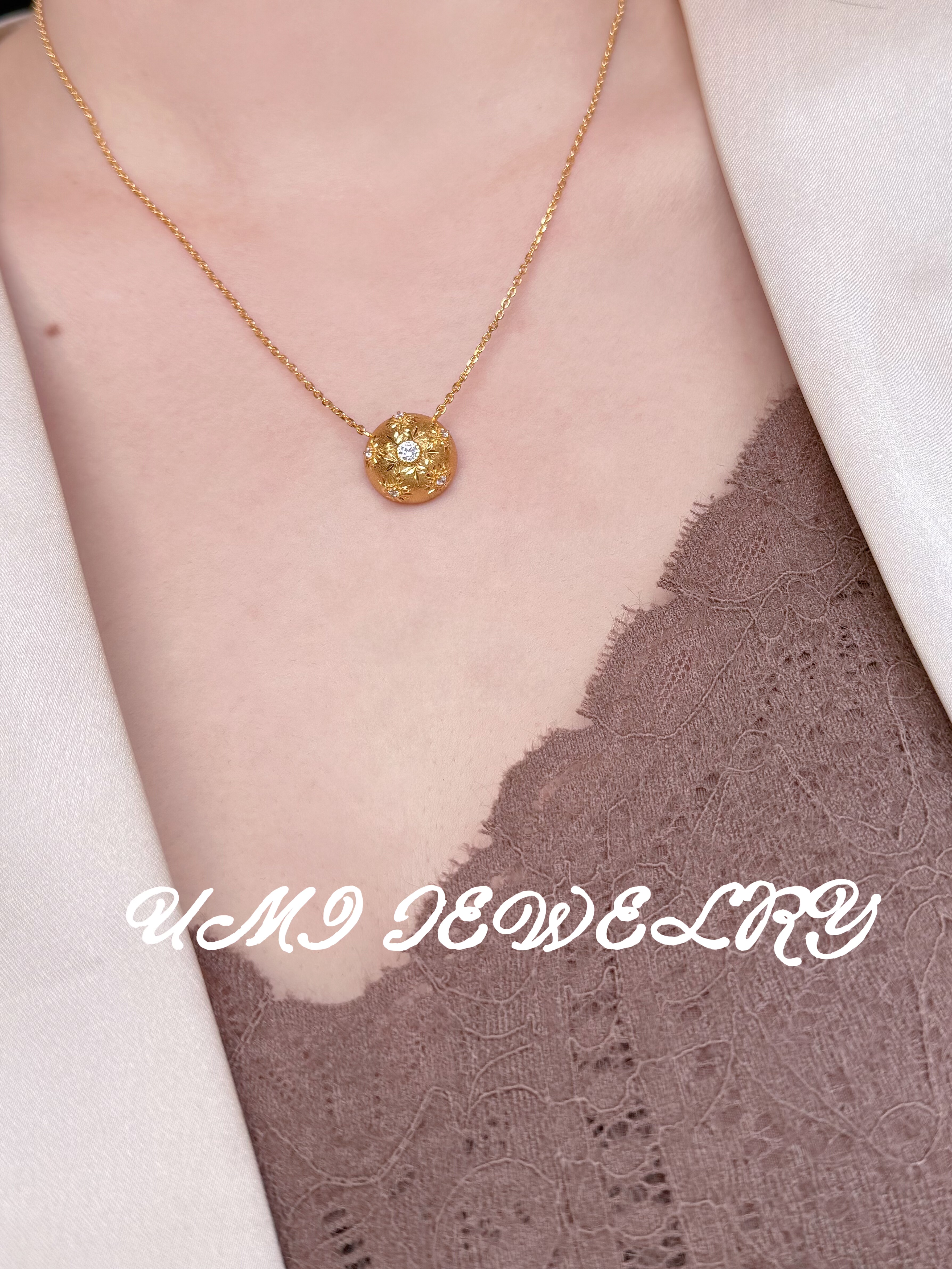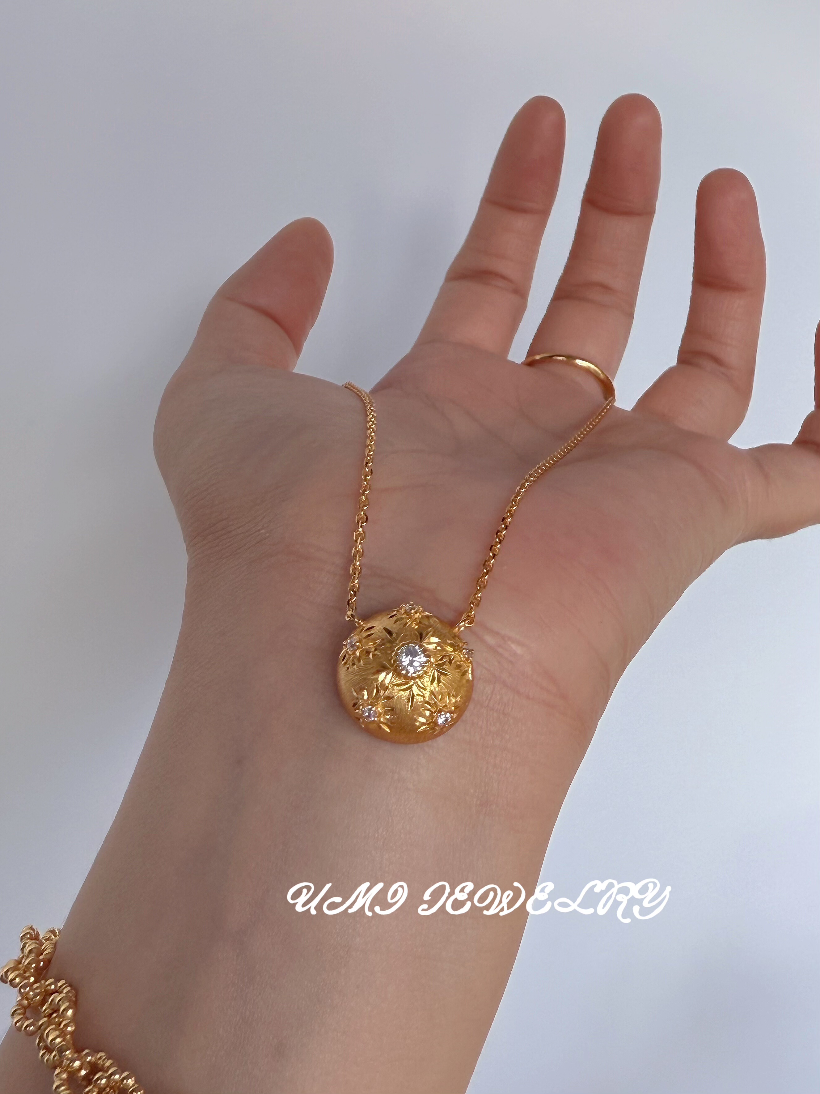 UMI【初见】S925银镀k金意大利拉丝镶钻雕金小众复古高级吊坠项链