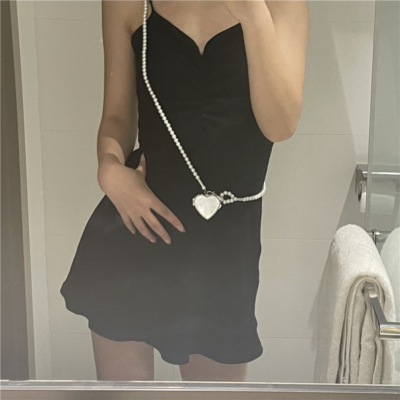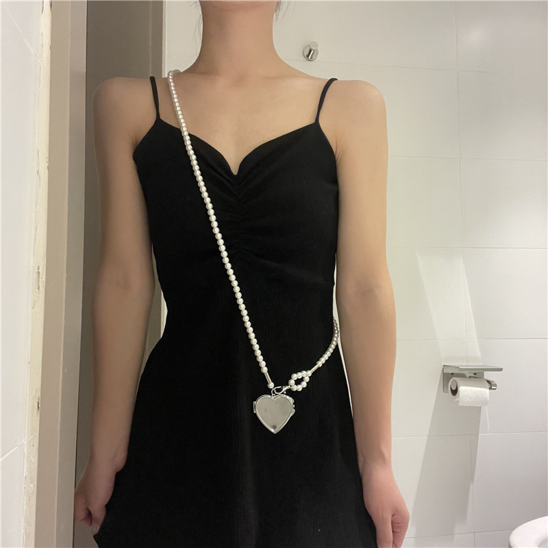 欧美风珍珠腰链斜挎背带女时尚心形镜子吊坠装饰腰带裙子西装项链