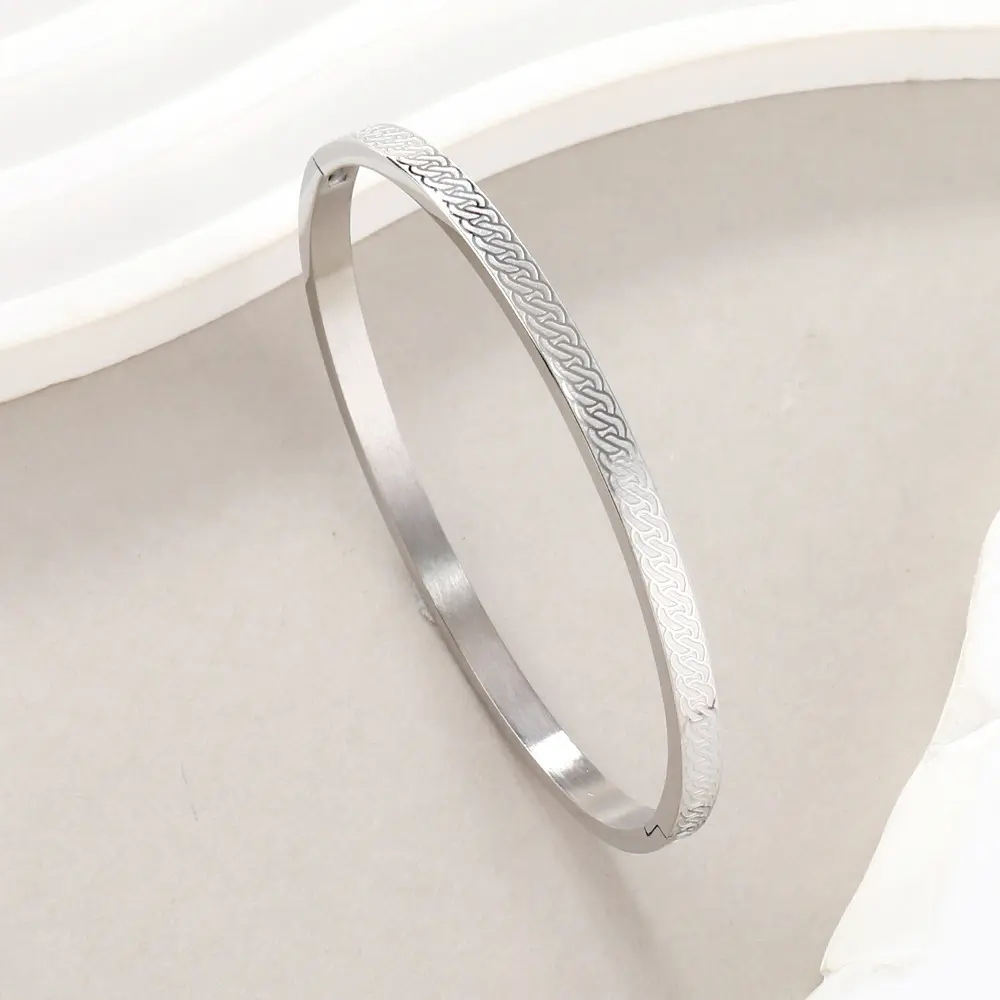 精美不锈钢饰品 腐蚀连环麻花绳索花纹钛钢手镯卡扣o型手饰厂