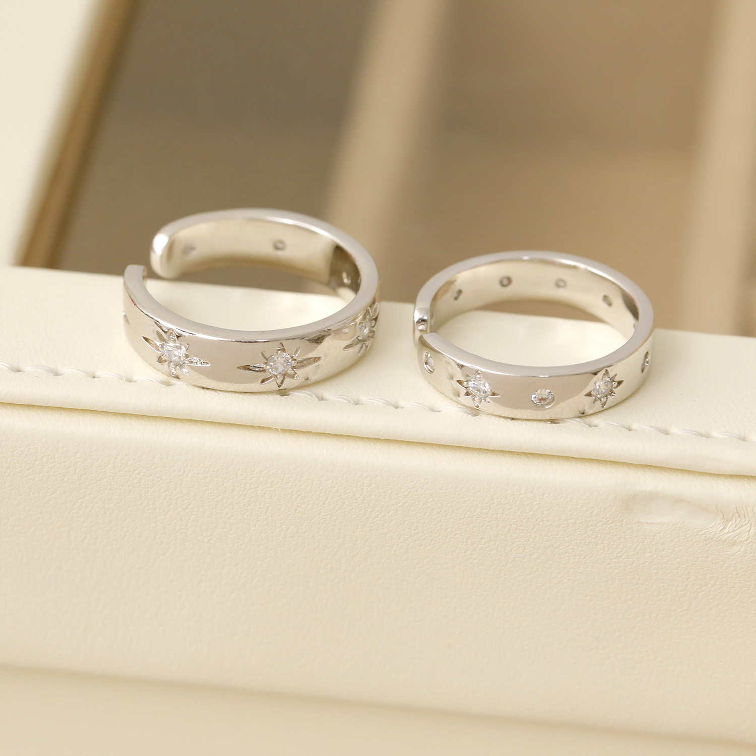 简约高级感微镶锆石星芒戒指宽口加厚素圈光面指环男女款两只装