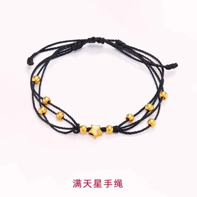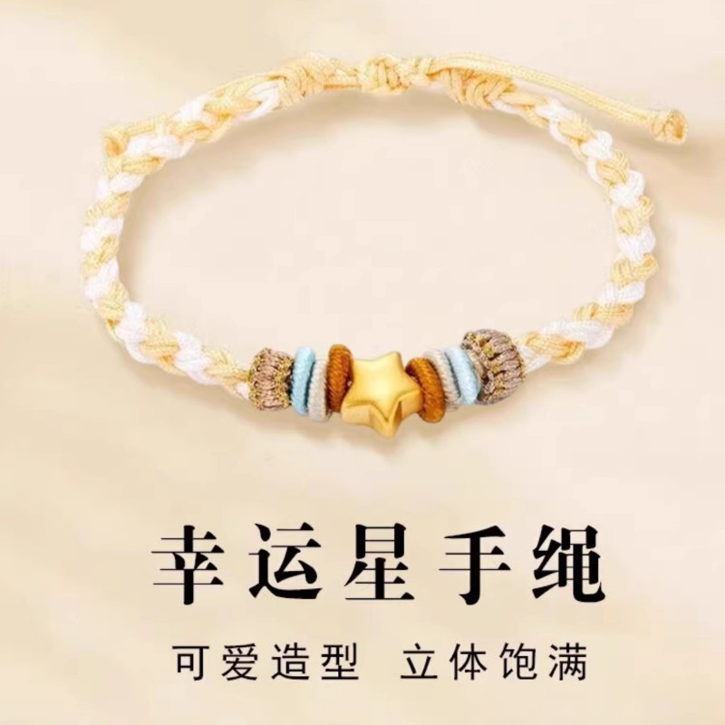 黄金小星星转运珠足金幸运星星编织手绳节日生日礼物送女友爱人