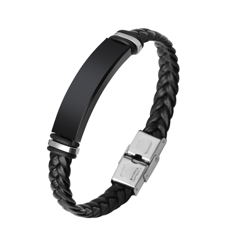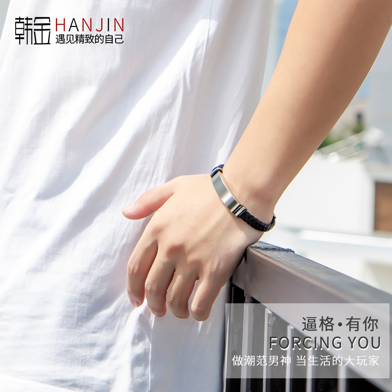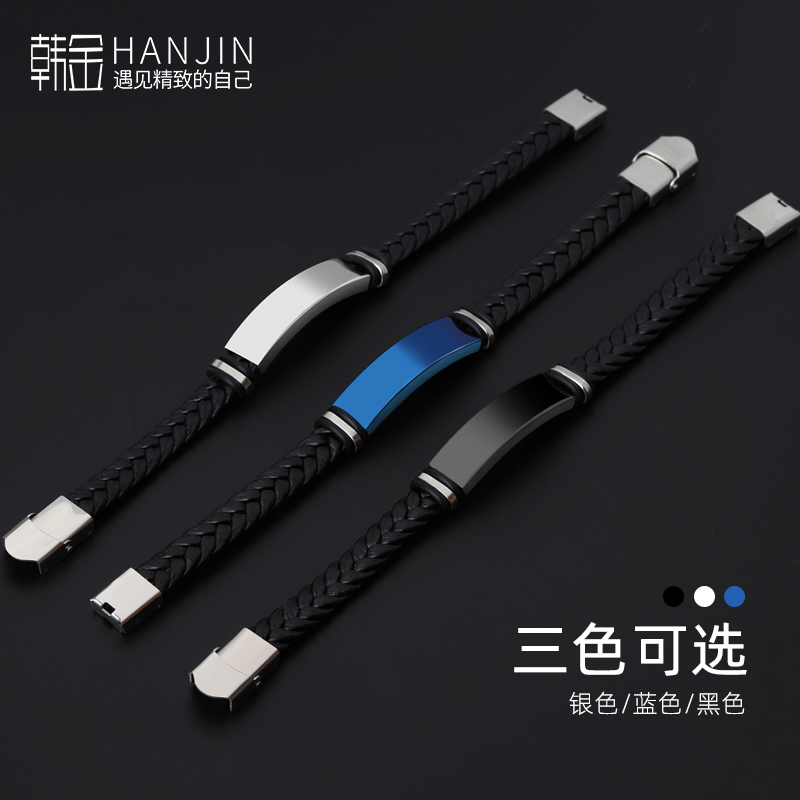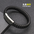 皮绳编织手链男生新款潮牌百搭高级感手绳钛钢首饰品刻字男士手链
