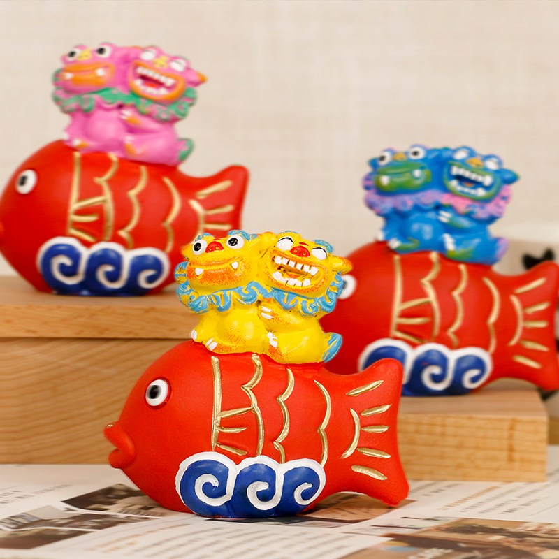 狮三百丨锦鲤 国风可p爱鲤鱼跃龙门狮子装饰桌面摆件学生朋友礼物