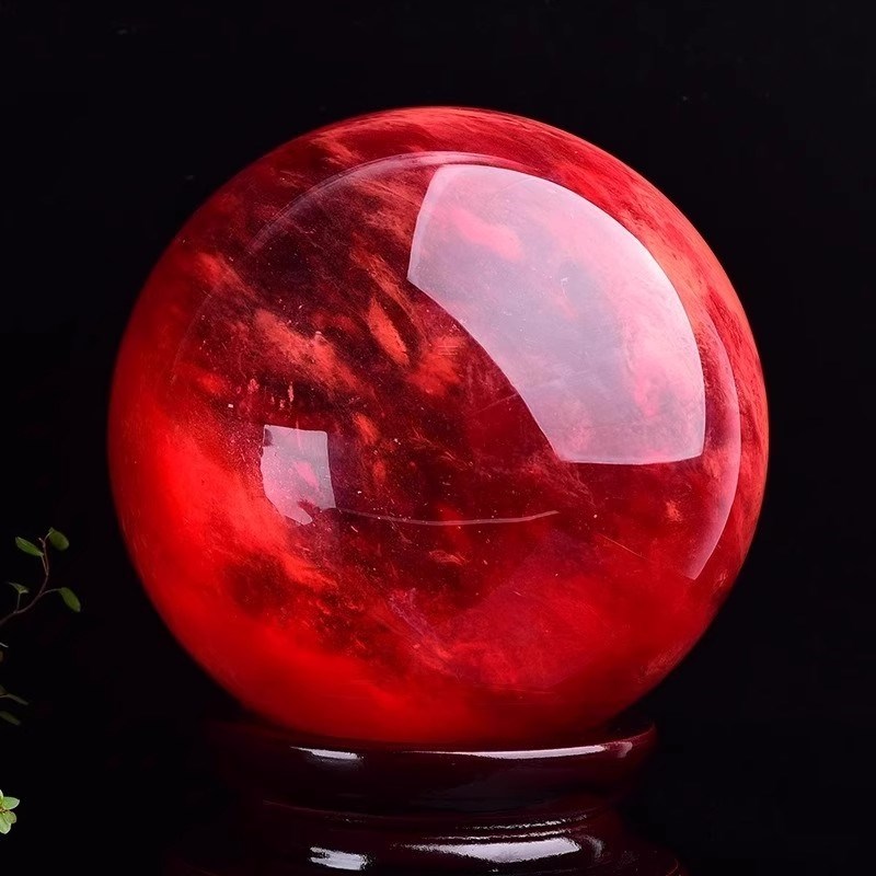 天然红色水晶球真原石大红吉祥珠鸿运球I装饰摆件办公室火属性熔