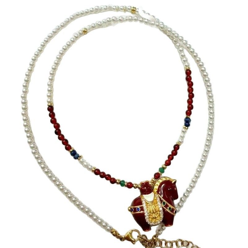红色马年吊坠项链女款2025新款毛衣链配饰高级感轻奢小众送礼物